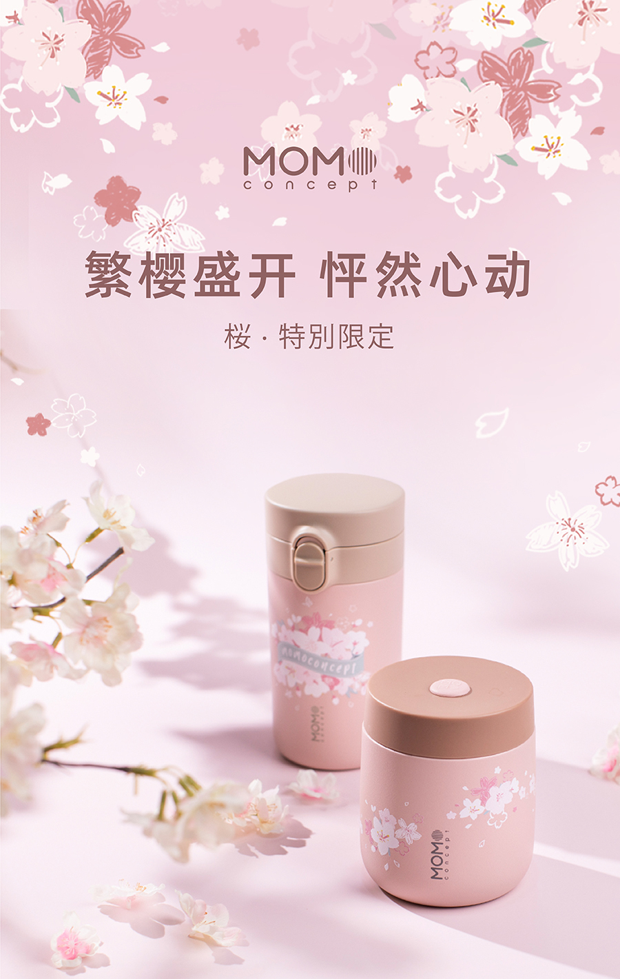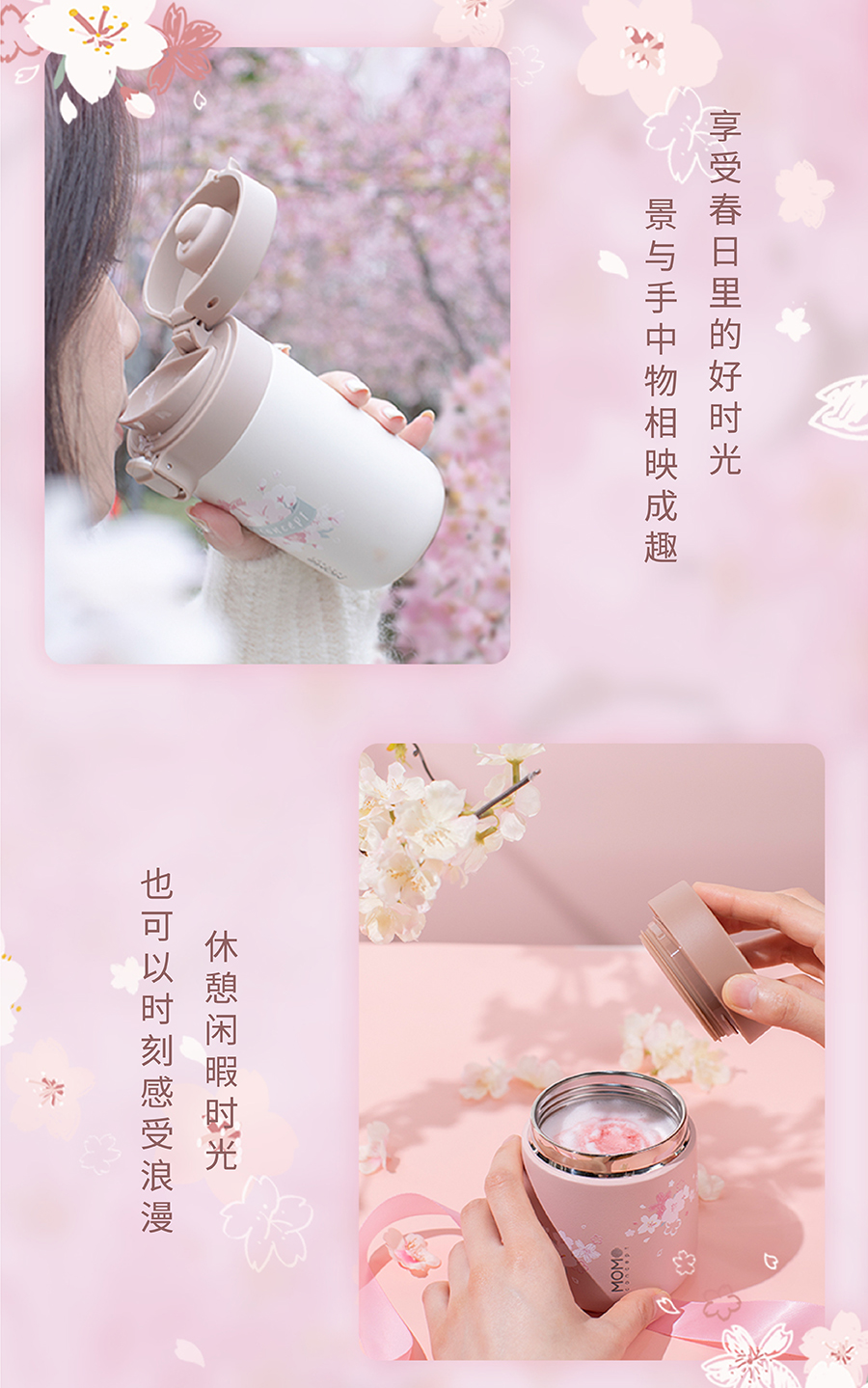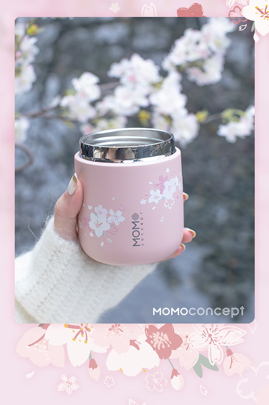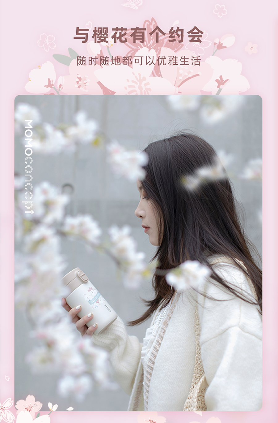 日本momoconcept 樱花水杯女高颜值便携咖啡保温杯小260ml 小立方桃子慕斯