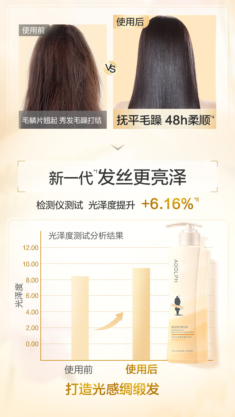 阿道夫(ADOLPH) 轻柔丝滑 420ml 洗发水 黄色(单位:瓶)