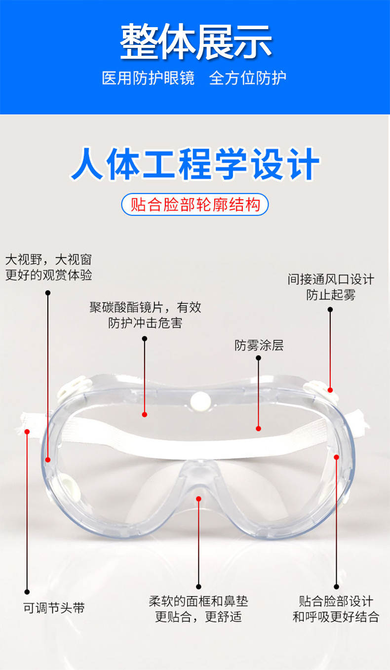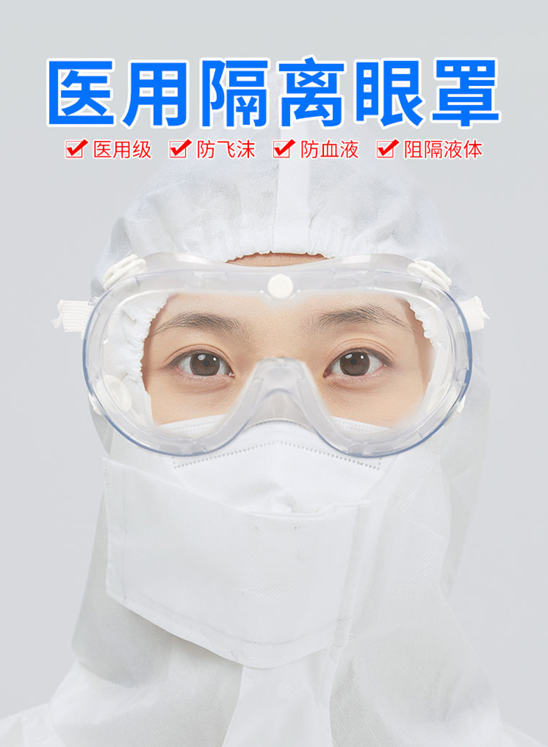 海氏海诺倍适威 医用隔离眼罩护目镜 一次性透明防护眼罩防唾液飞溅防雾防尘眼罩可戴眼镜