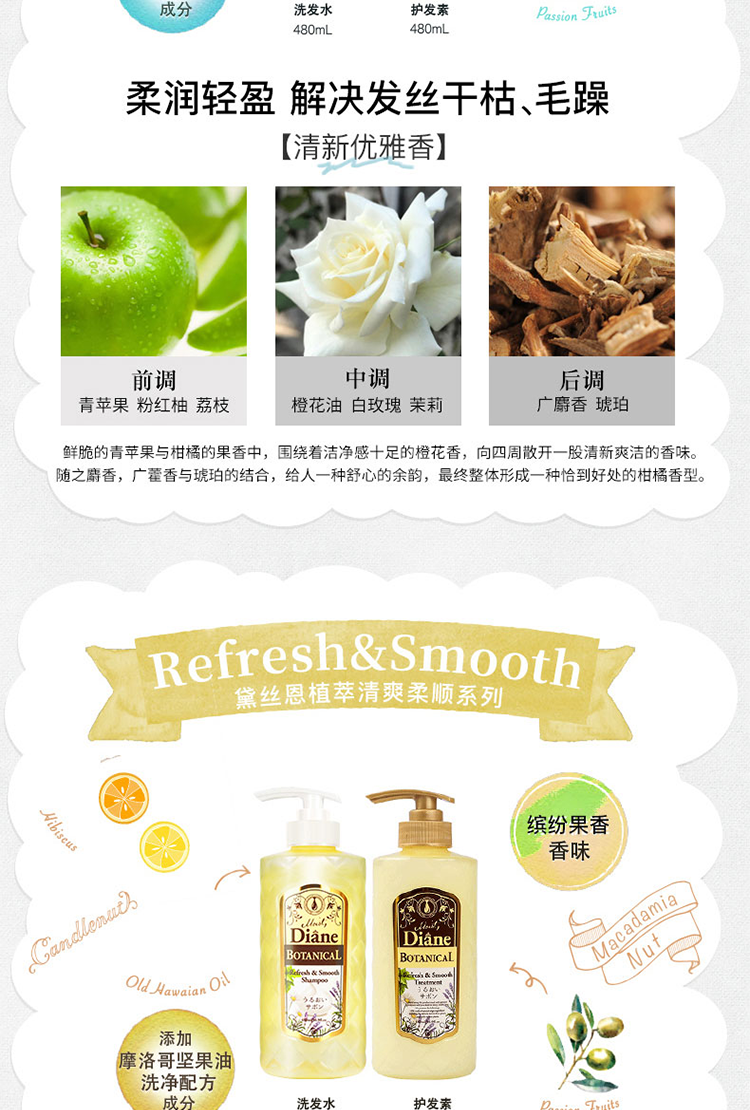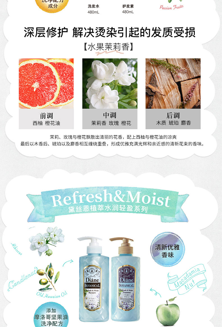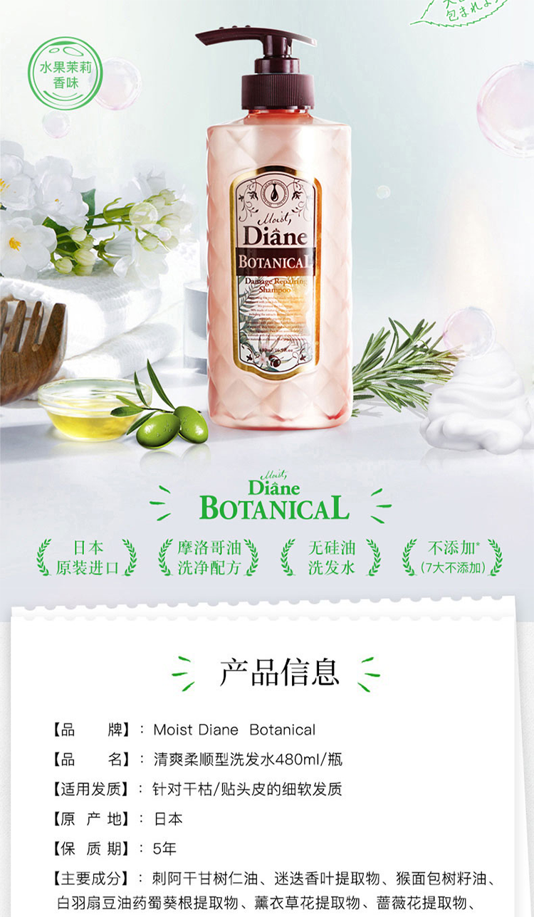 黛丝恩植萃洗发水奢华损伤修护型(粉)480ml 茱萸粉
