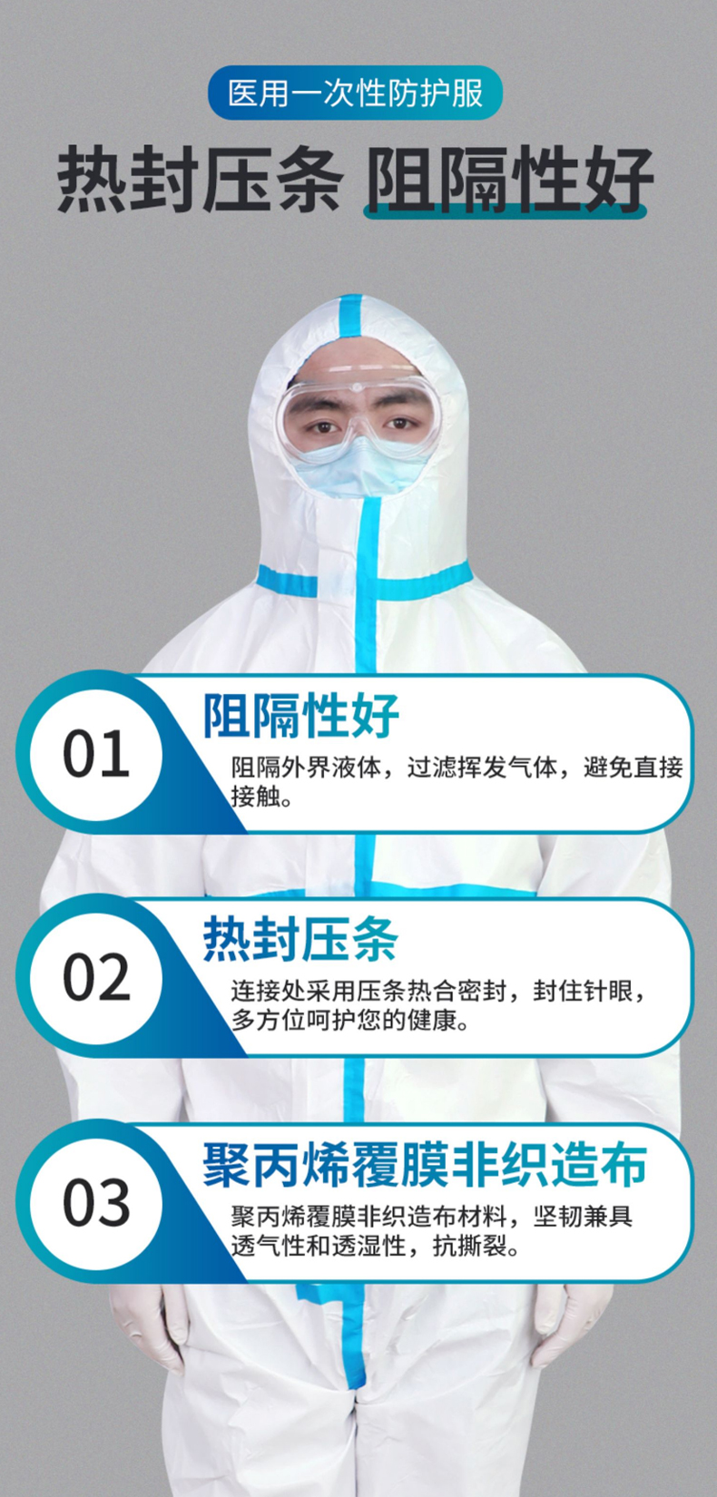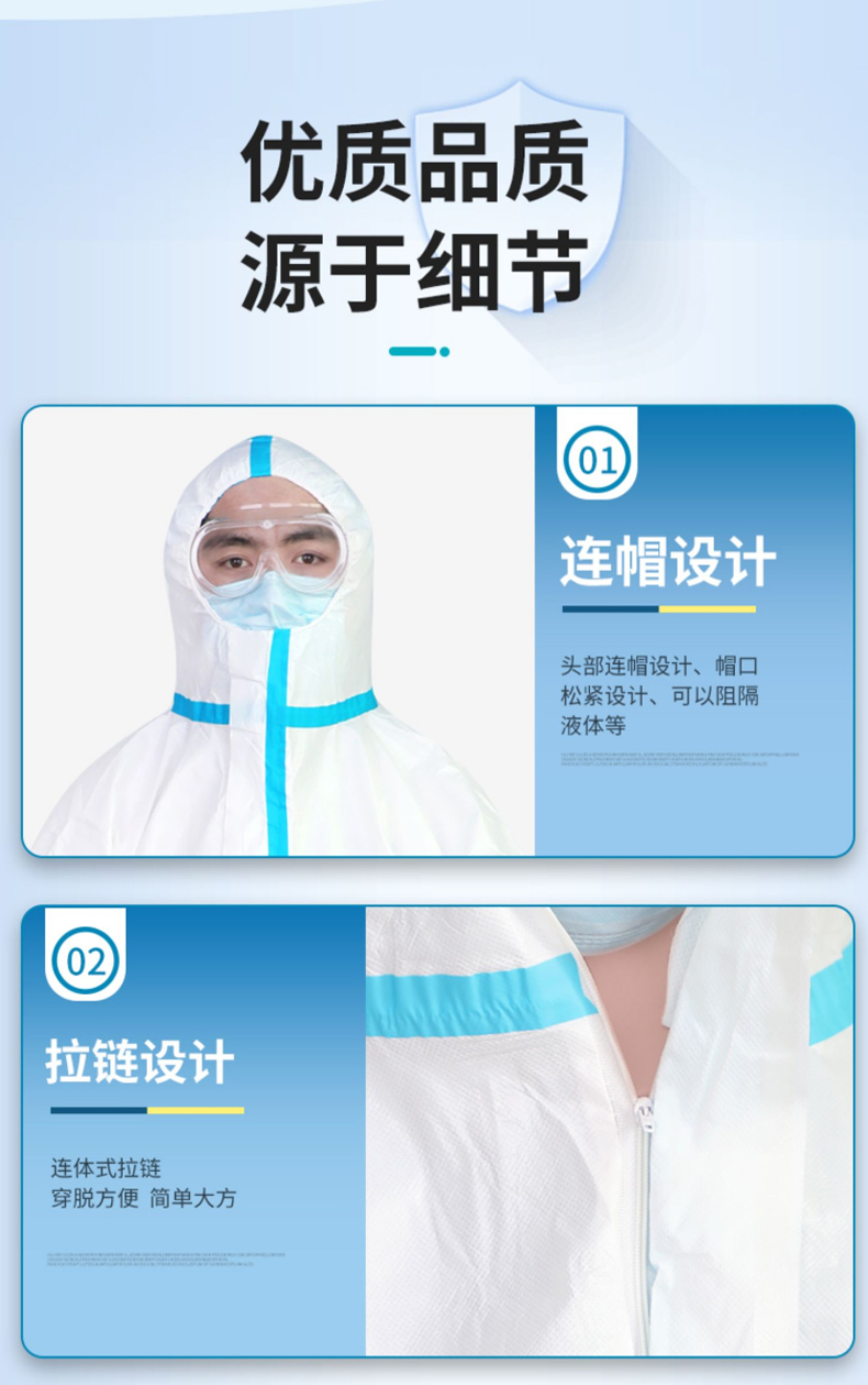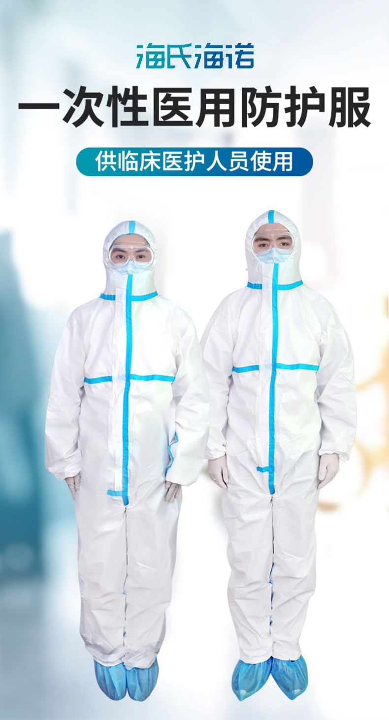 海氏海诺 医用一次性防护服 透气男女隔离服隔离衣 无纺布连体式套装【二类医疗器械】 白色