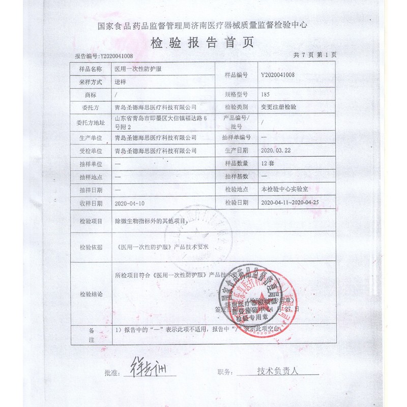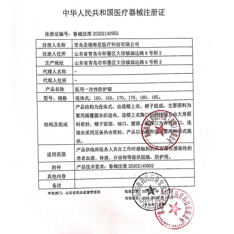 海氏海诺大麦有品 医用一次性防护服 透气男女隔离服隔离衣 无纺布连体式套装【无菌级】 白色