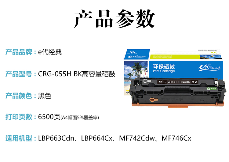e代经典 CRG-055H BK高容量硒鼓黑色 黑色