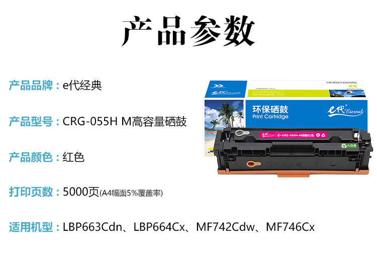 e代经典 CRG-055H M高容量硒鼓红色 红色