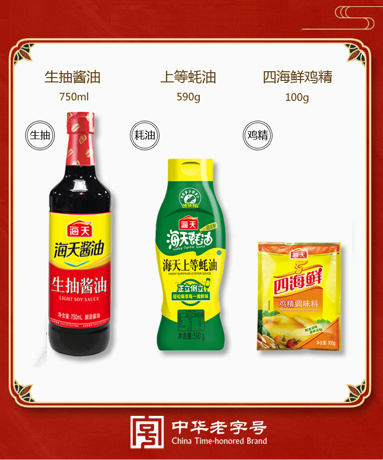 海天厨房调味组合装(生抽750ml+蚝油590g+鸡精100g)(中华老字号) 组合装