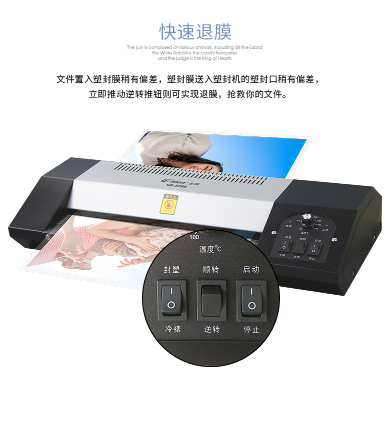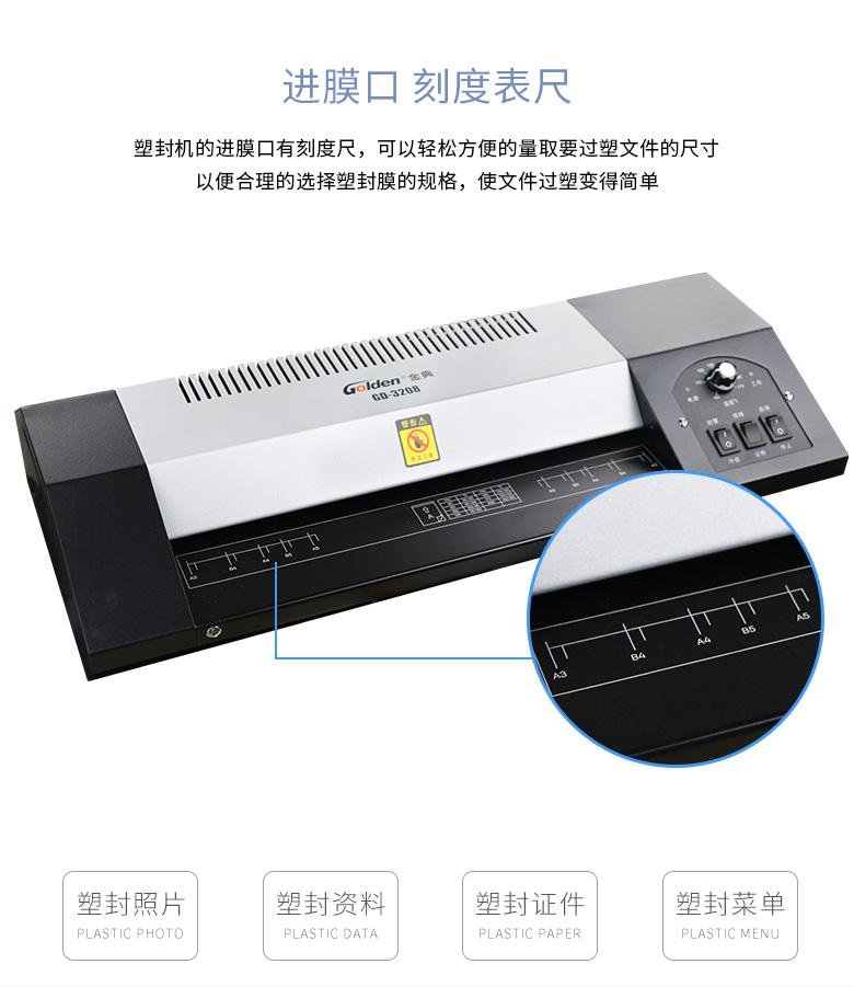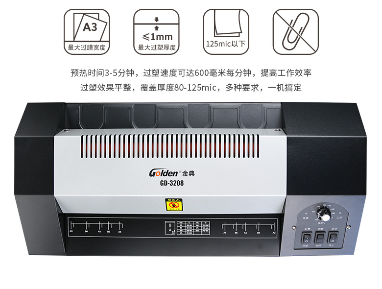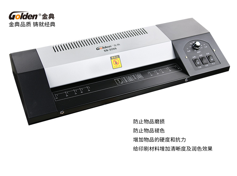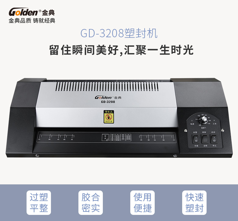 金典 GOLDEN GD-3208全金属大功率塑封机/过塑机 冷裱/热裱功能 多档位温度 A3 黑色