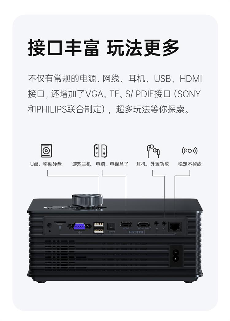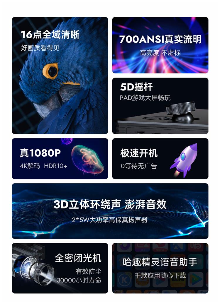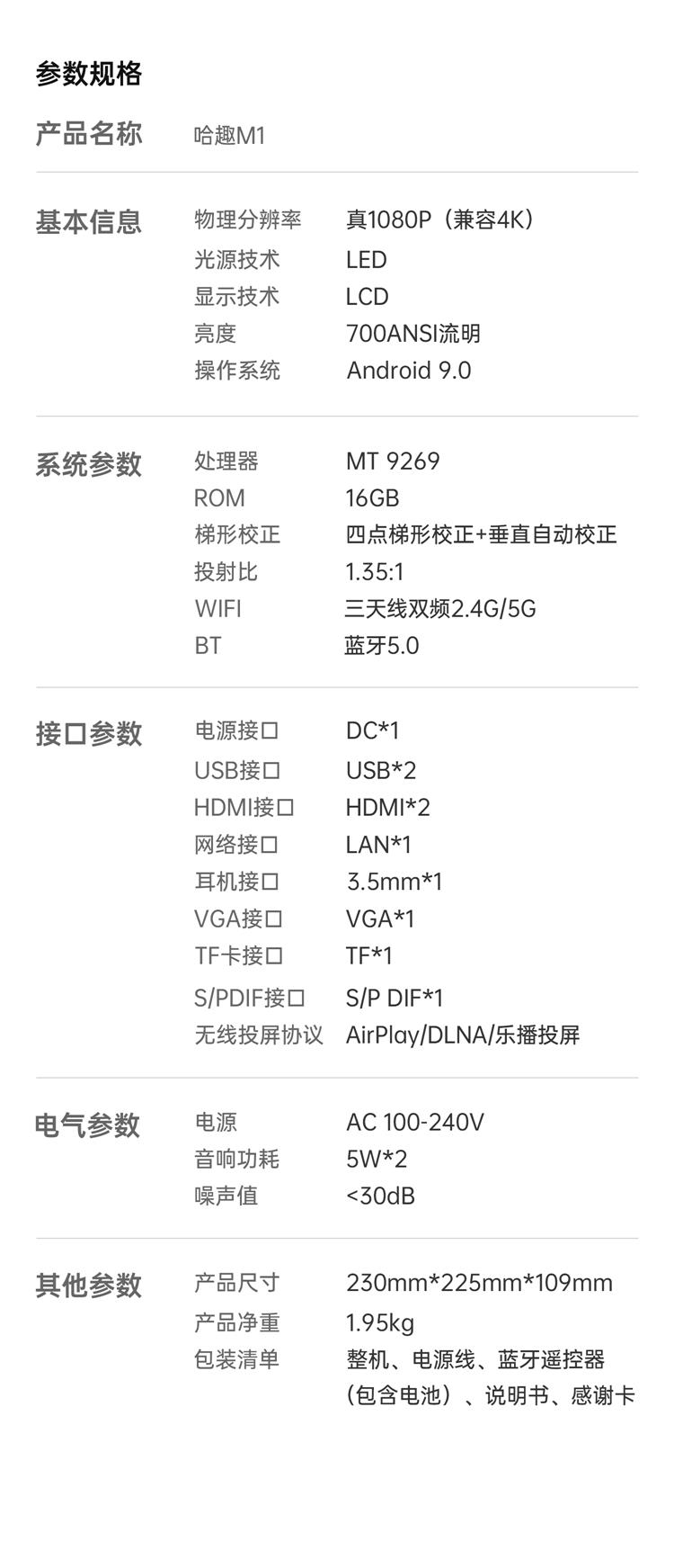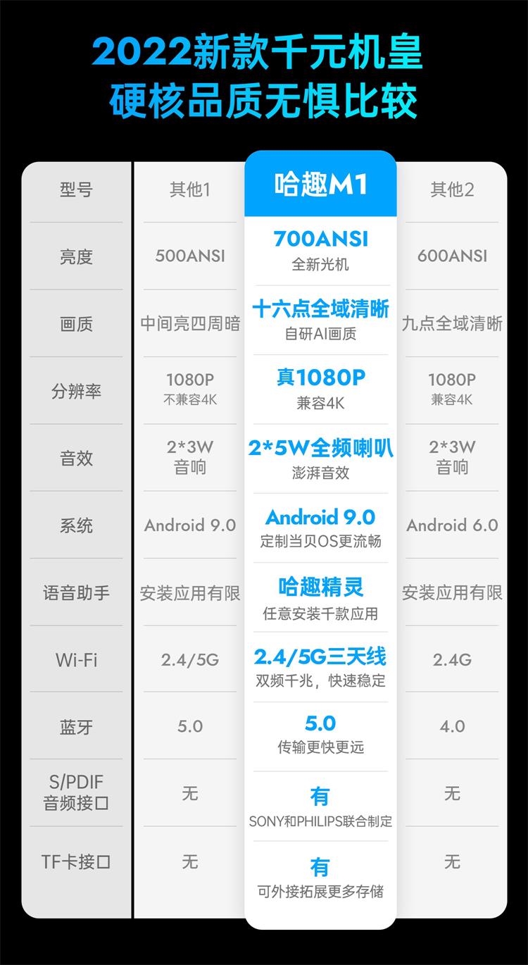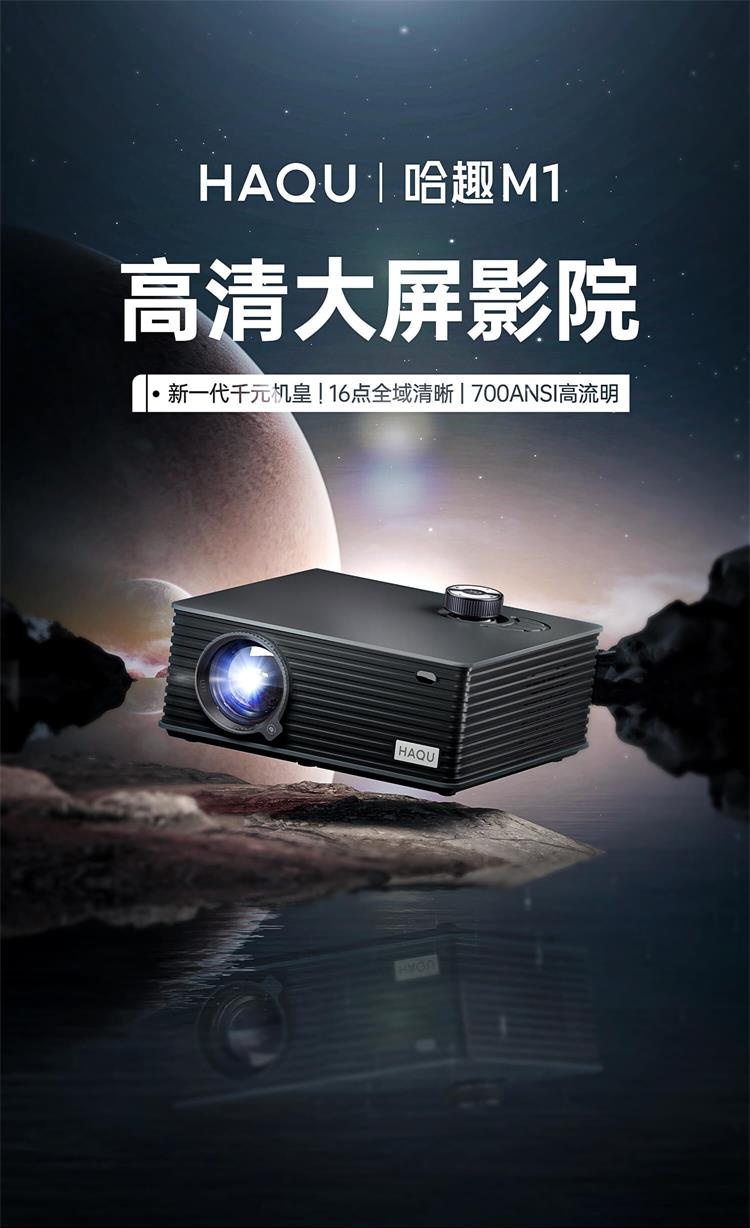 哈趣 M1 全高清投影仪家用 卧室游戏投影机(700ANSI 16点全域清晰 畅玩大屏游戏) 黑色