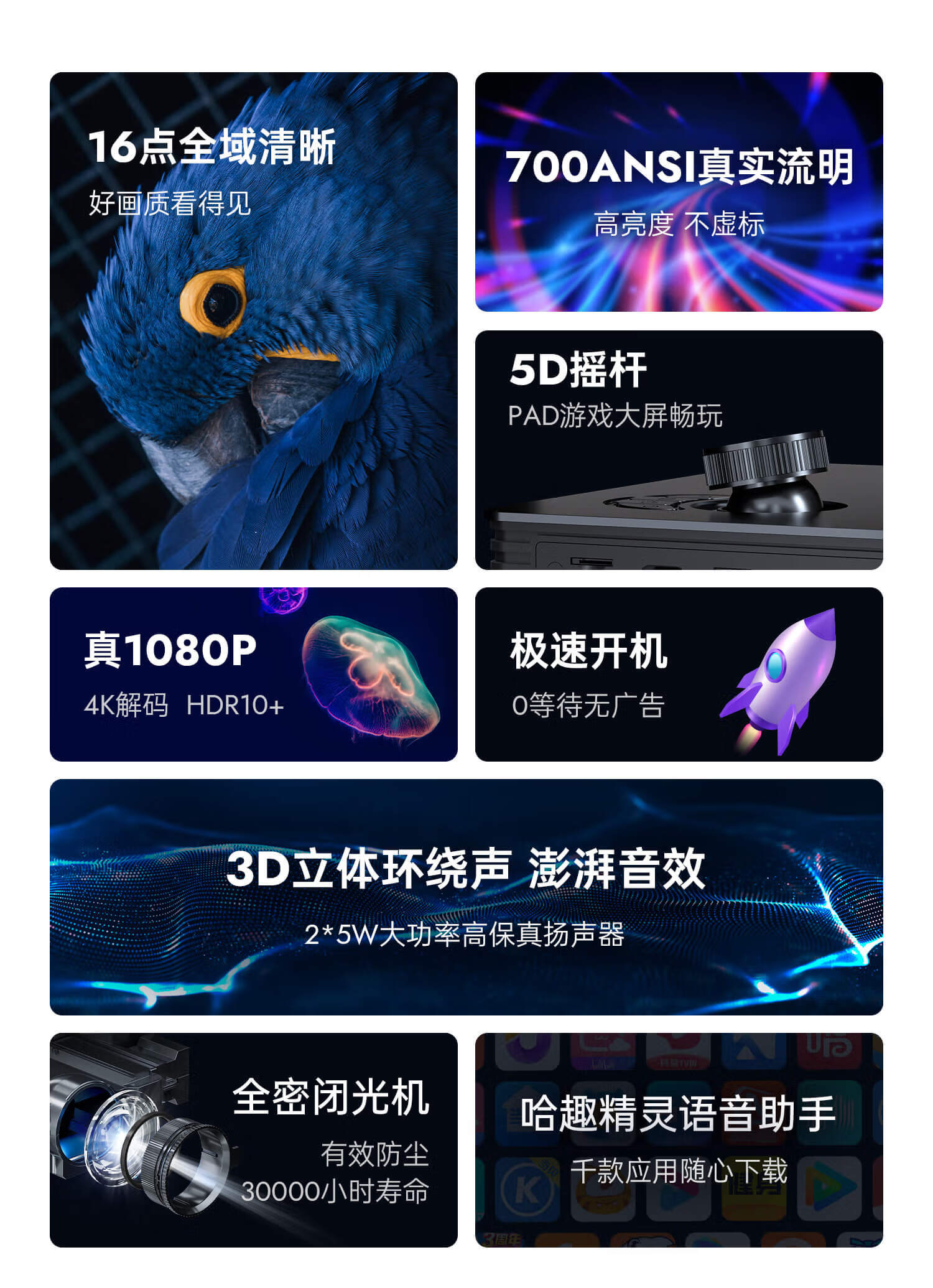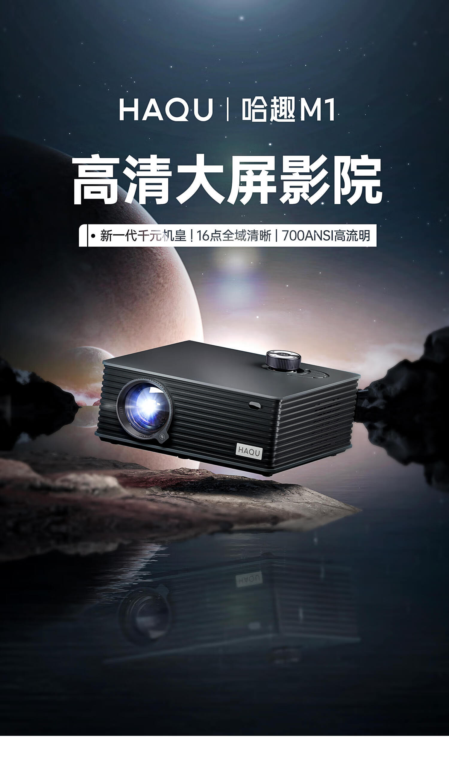 哈趣 M1 全高清投影仪家用 卧室游戏投影机/台(700ANSI 16点全域清晰 畅玩大屏游戏) 黑色