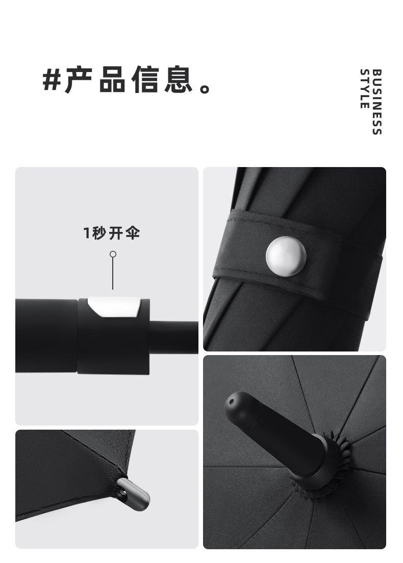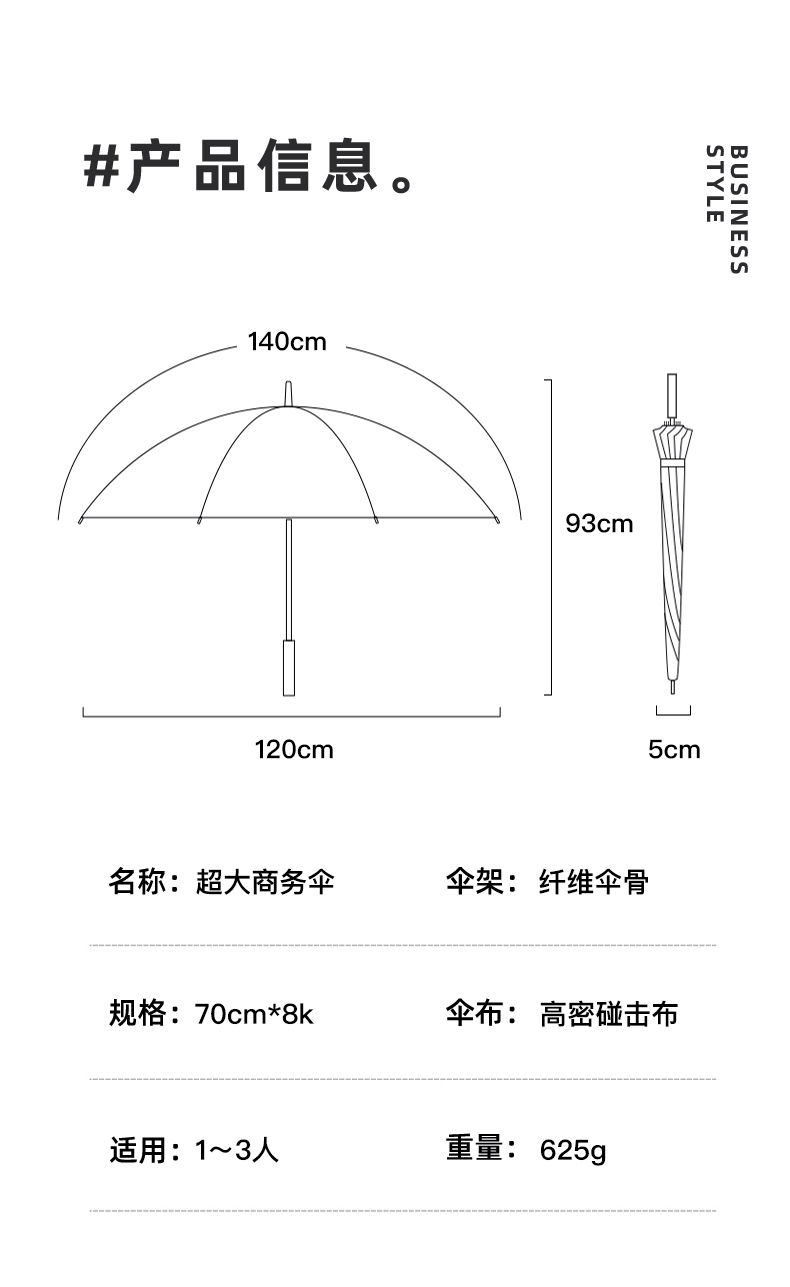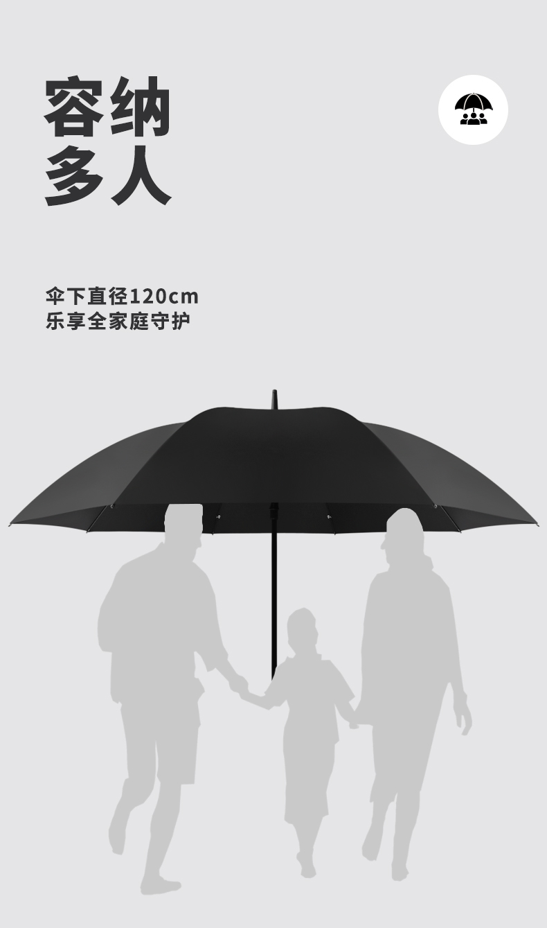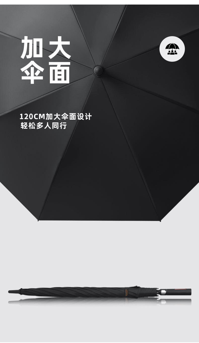 美度M1123长柄碰击布男士商务晴雨伞70cm*8k/122cm(单位:把) 黑色