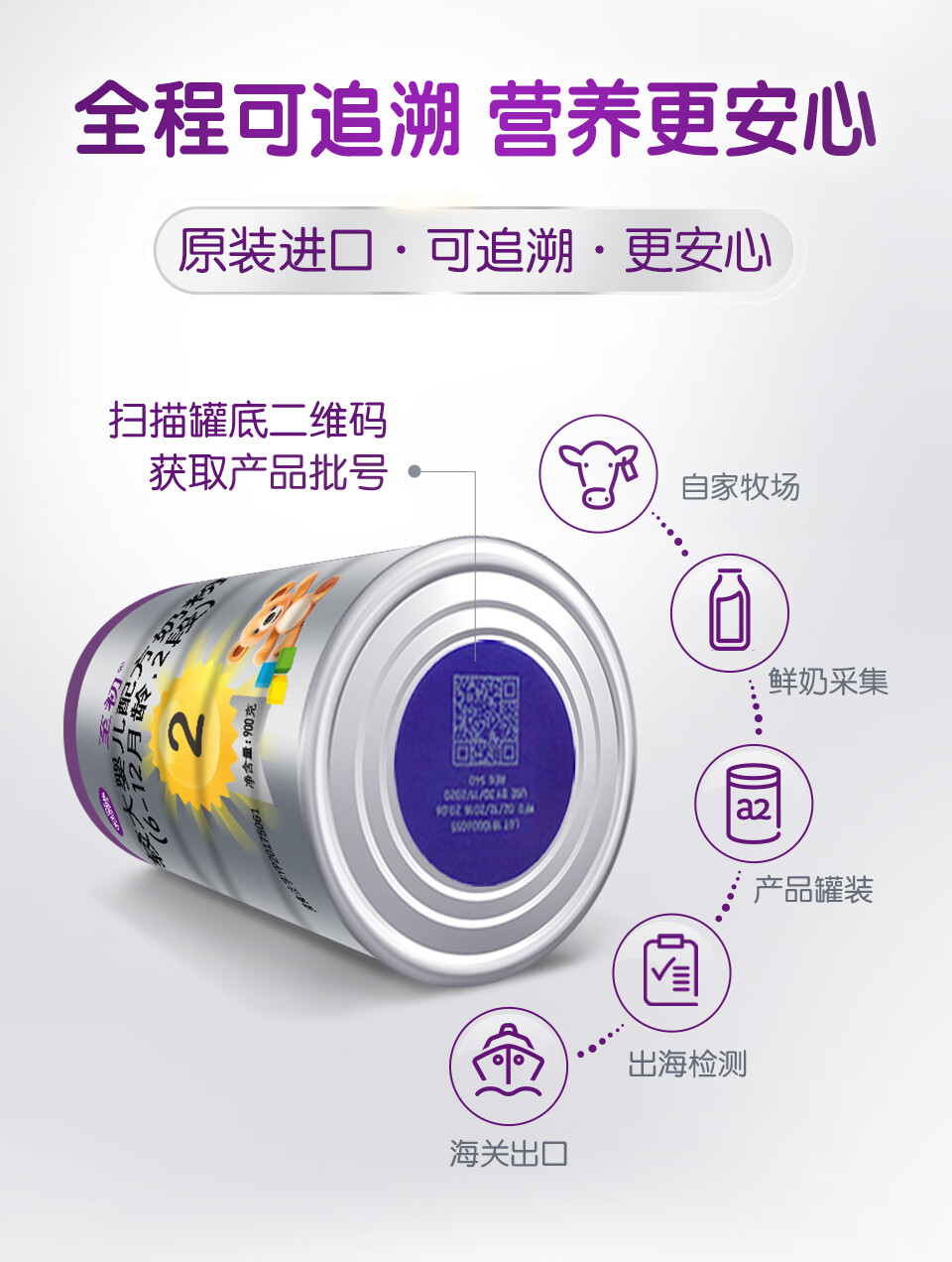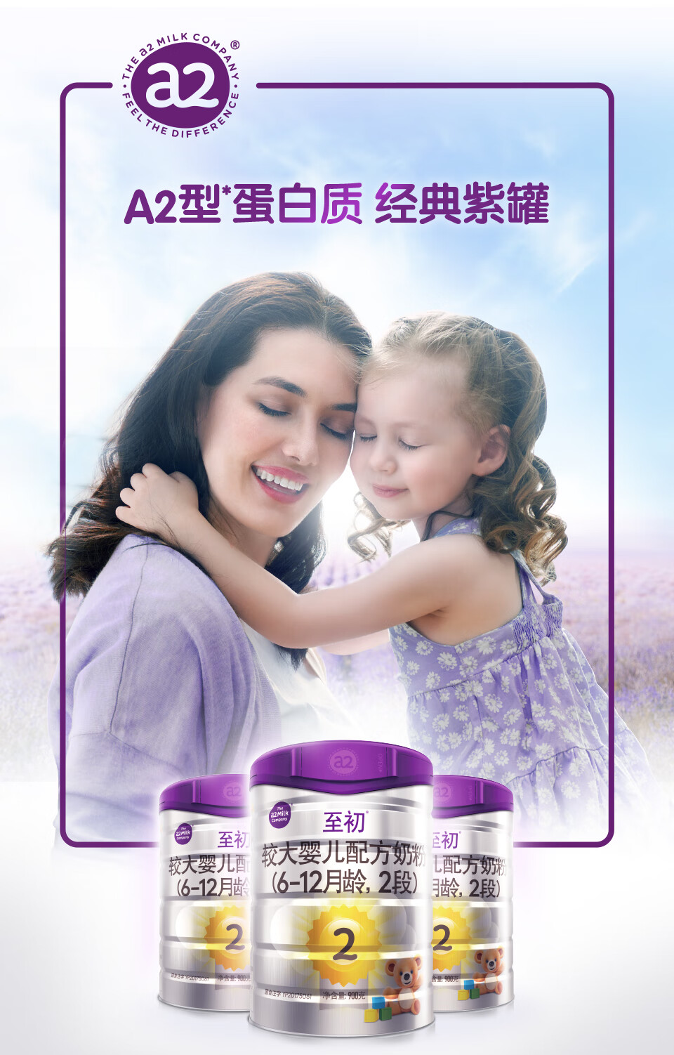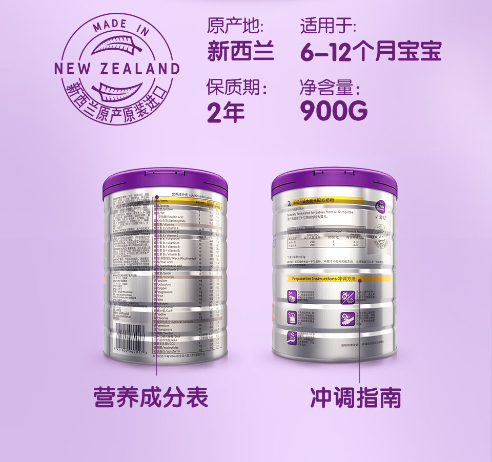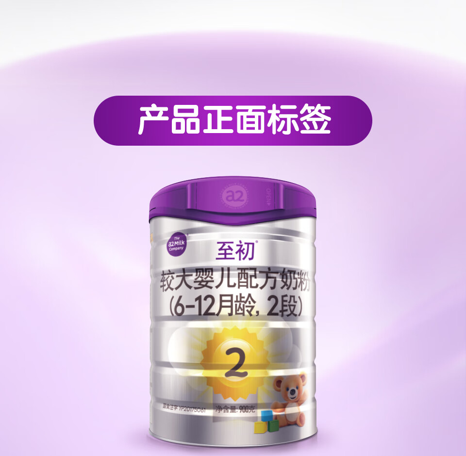 a2至初较大婴儿配方奶粉(2段) 900g/罐 2罐