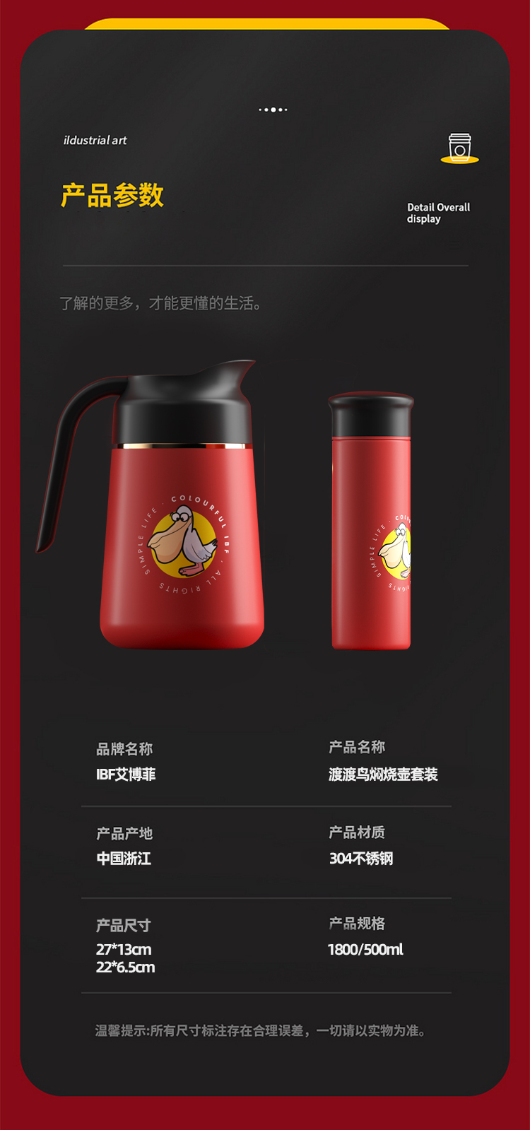 IBF艾博菲-渡渡鸟焖茶壶套装 IBF2213BH 500ML+1800ML 套 红色