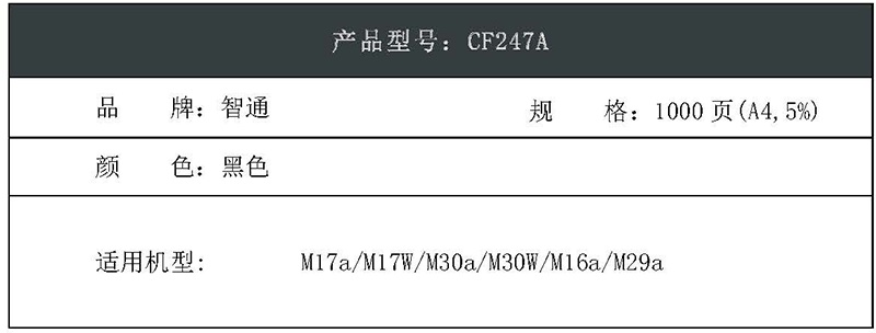 智通(ZT) CF247A 标准版 带芯片 打印量1000页 适用惠普HP M17a/M17W/M30a/M30W/M16a/M29a 硒鼓 1.00 只/支 (计价单位:支) 黑色