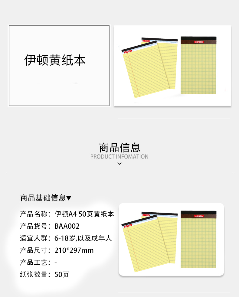 伊顿拍纸本黄纸本A4(西藏不发货) 方格12本装