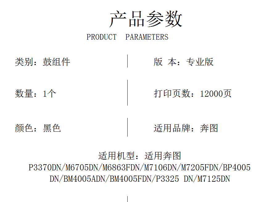 高端DO405/DL415鼓组件适用奔图P3370DN/M6705DN/M6863FDN 支 黑色
