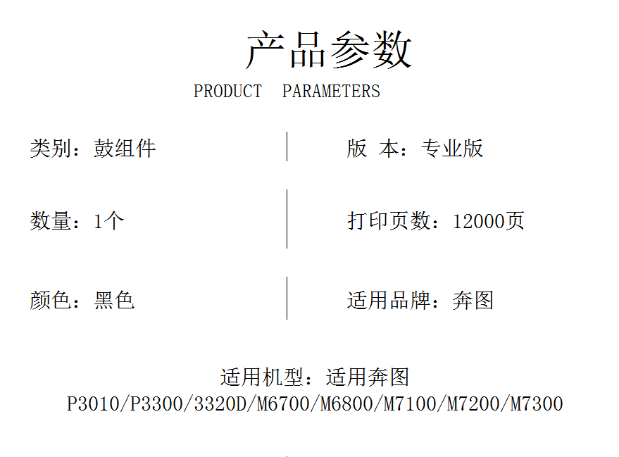 高端DO400/DL411鼓组件适用奔图P3010/P3300/3320D/M6700/M6800支 黑色
