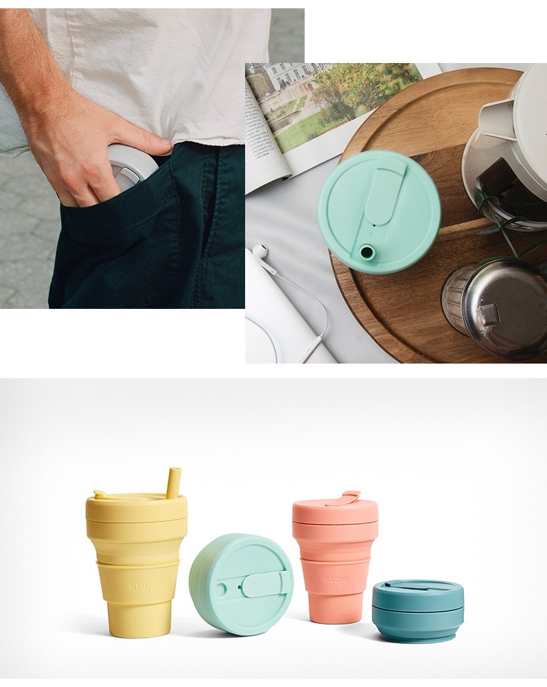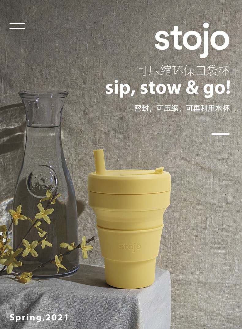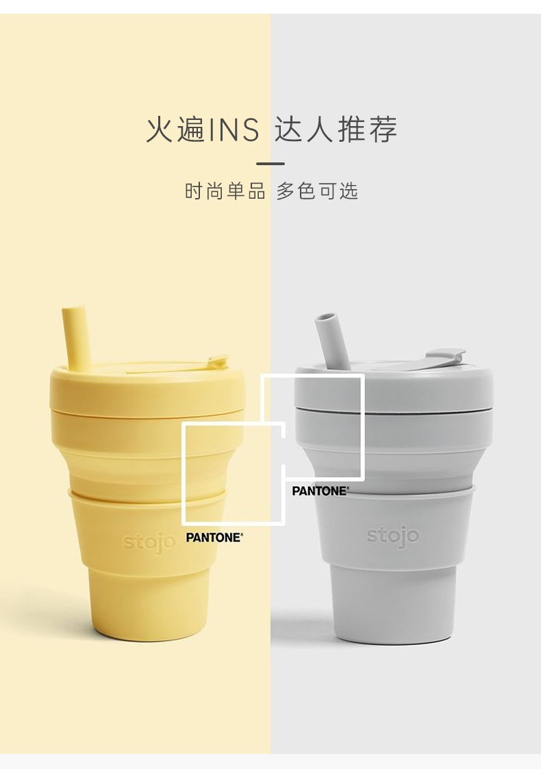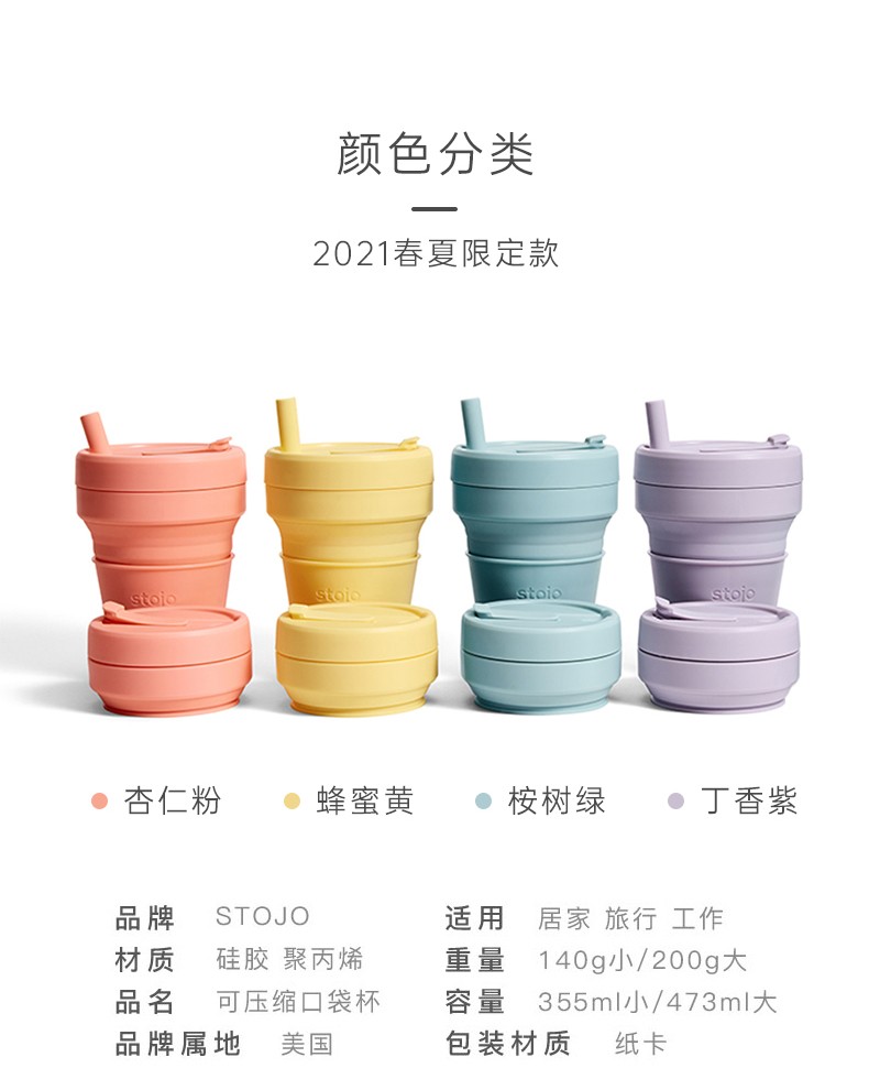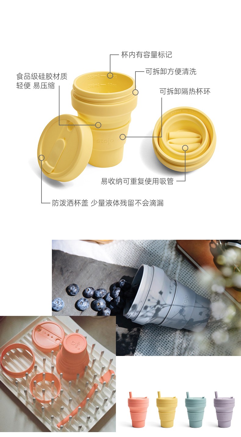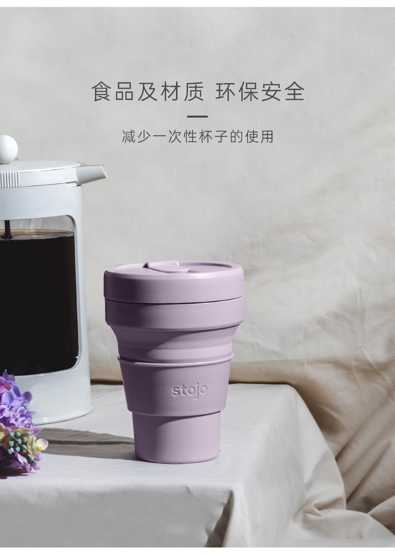 STOJO 美国咖啡杯折叠杯水杯丁香紫大-有吸管 紫色