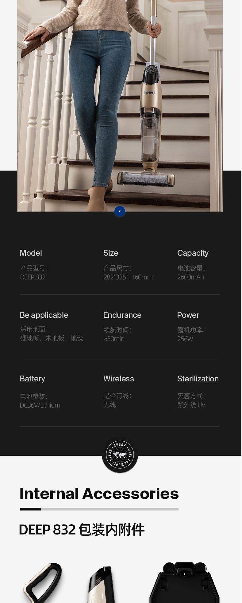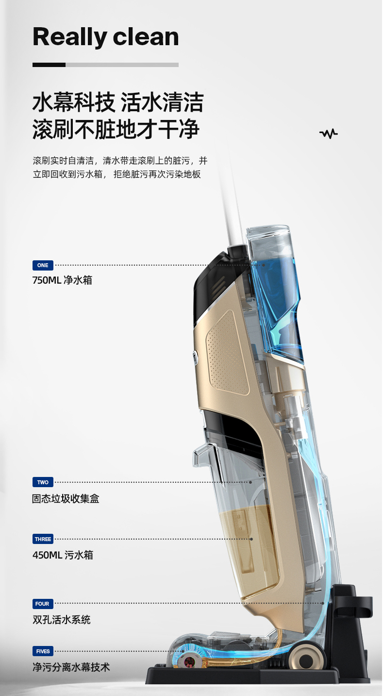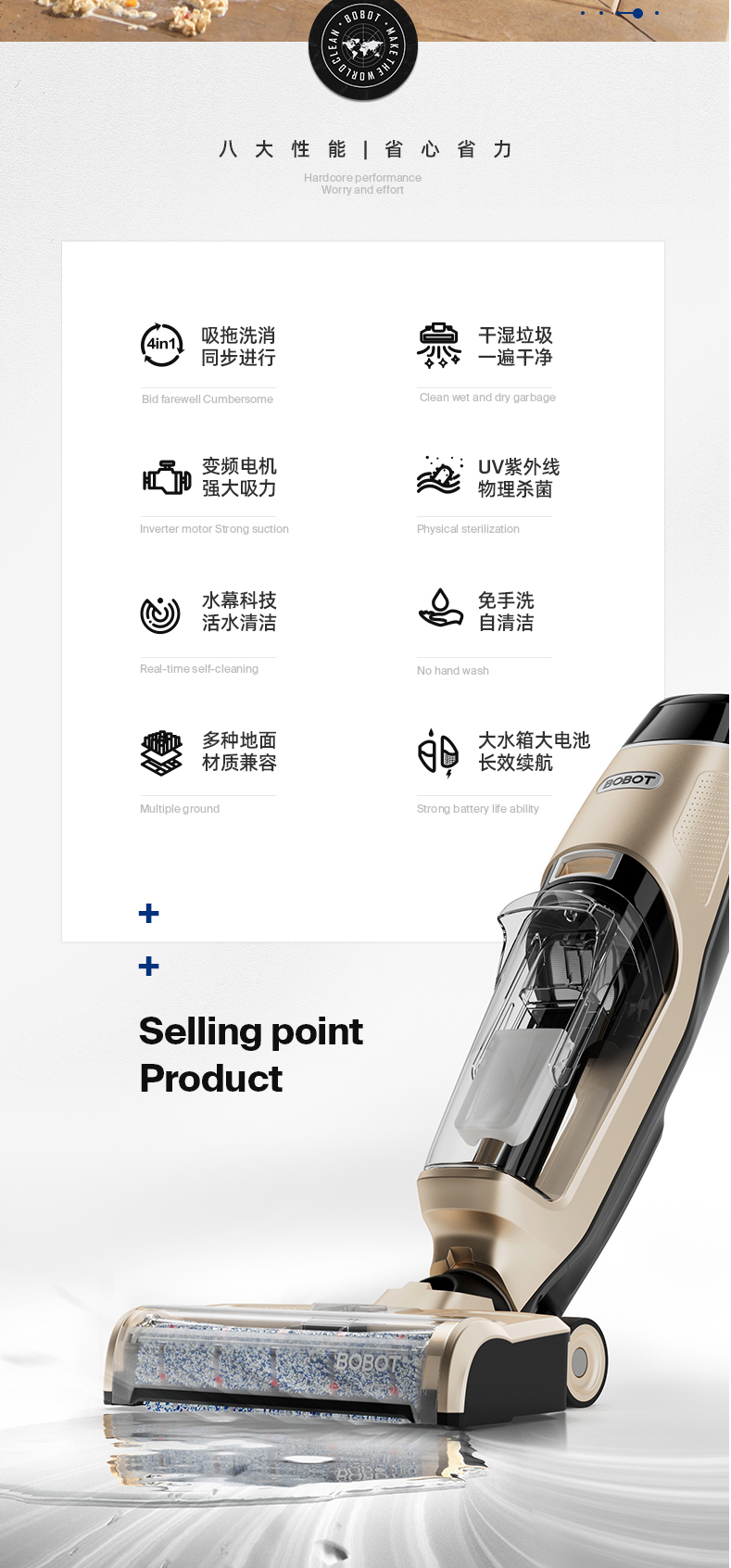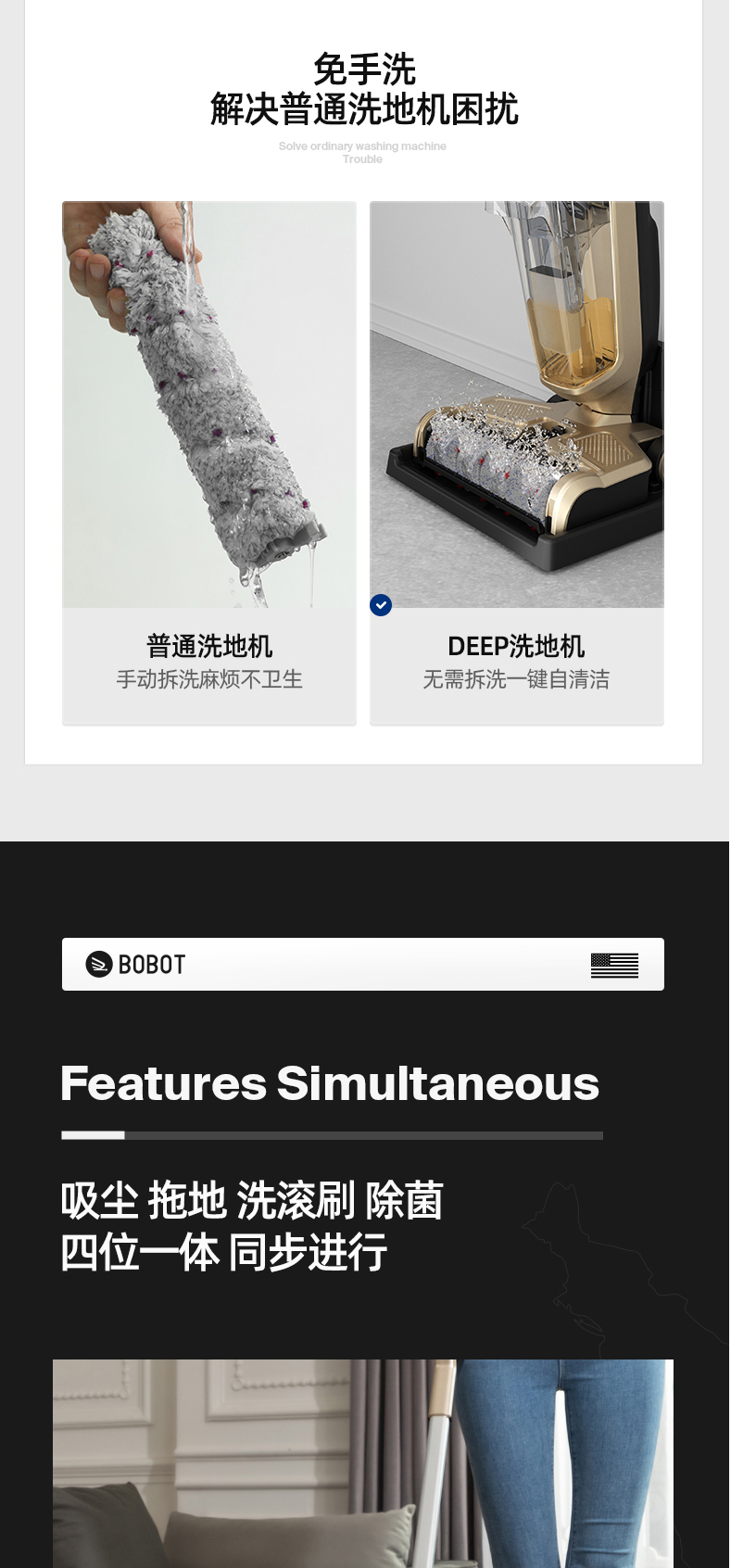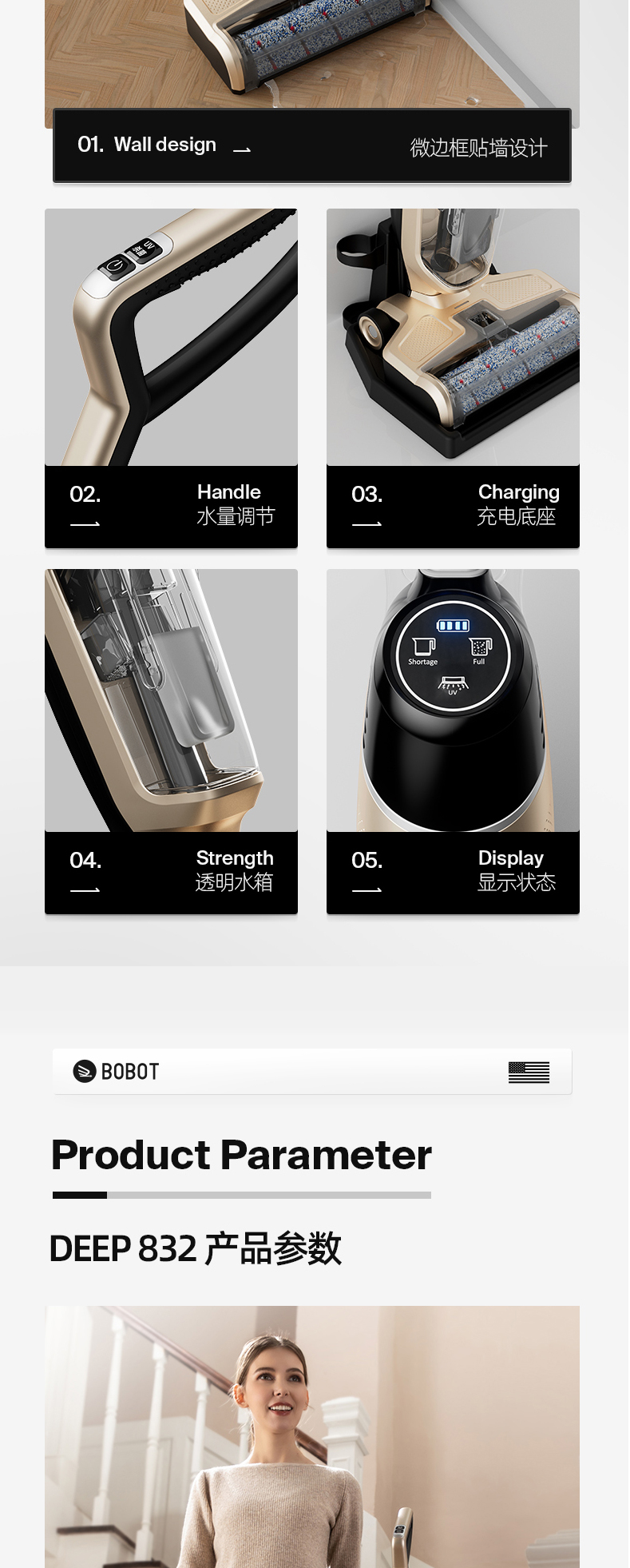 博宝特BOBOT洗地机吸拖一体拖地机洗拖一体洗涤机吸尘器家用 DEEP 832(单位:台) 香槟金