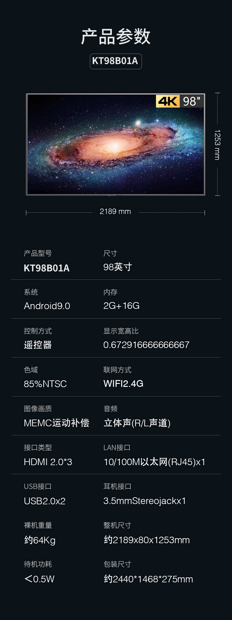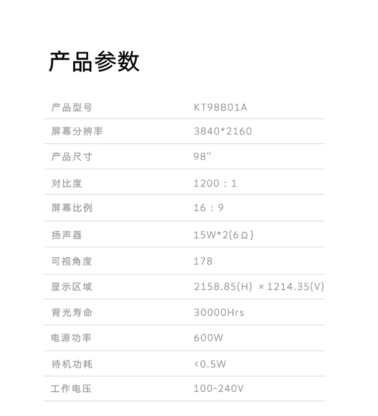 创维(Skyworth)KT98B01A会议平板98英寸电视 4K超高清投屏 家用企业商用显示 单位:台 黑色