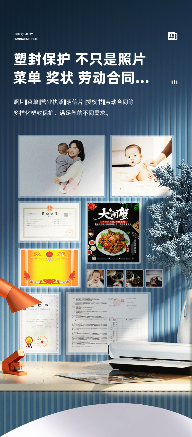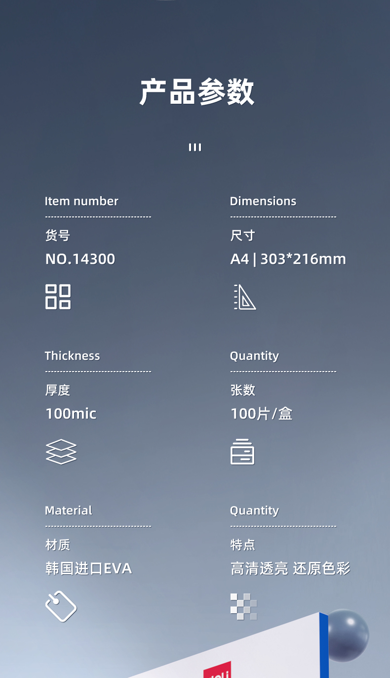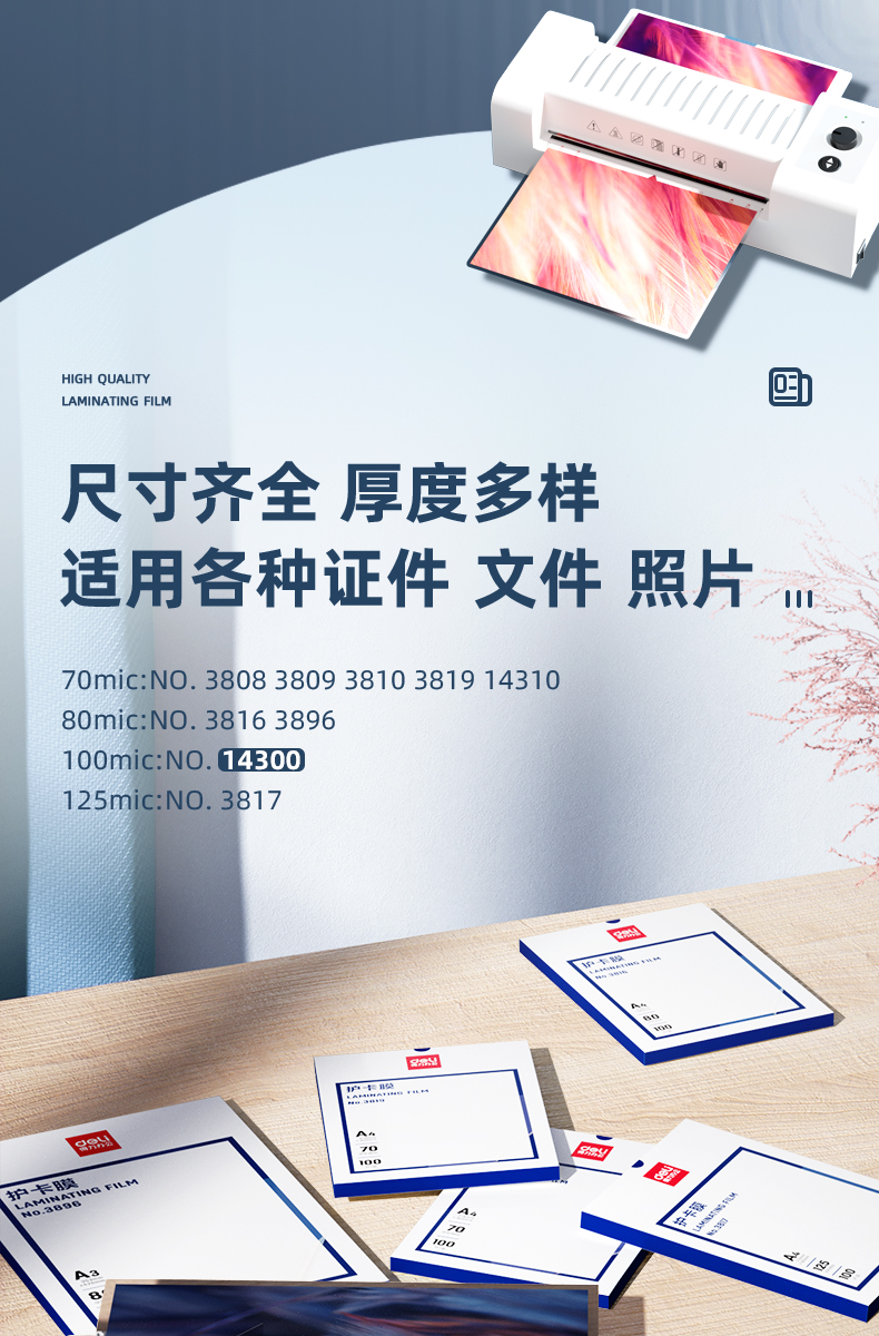 得力(deli)14300 真空包装机过塑机塑封机 过塑膜 标准透明护卡膜/塑封膜216*303mm/100mic A4 100张/包 白色