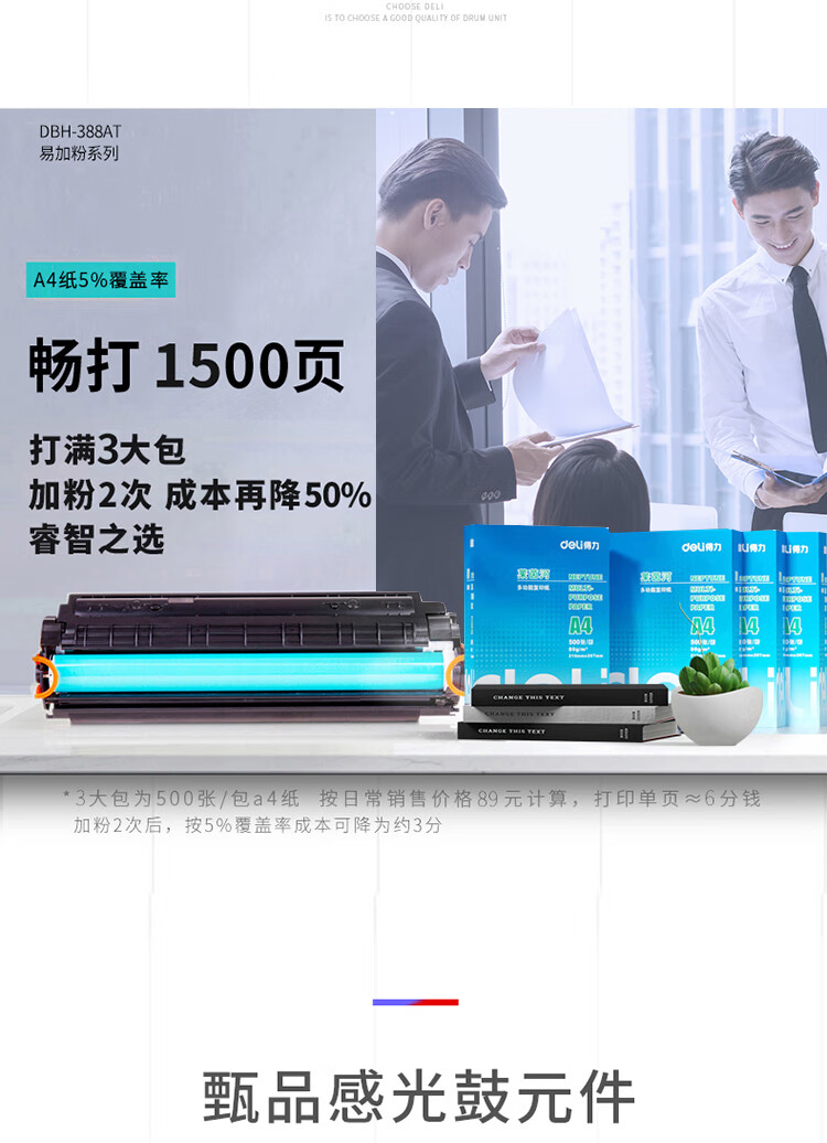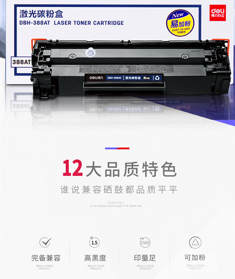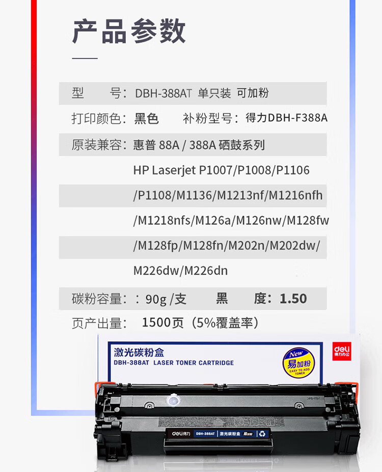 得力(deli)DBH-388AT易加粉硒鼓 88A打印机硒鼓(适用惠普 P1007/P1008/P1106/P1108/M1136/M1213nf/M1216nfh) 个 黑色