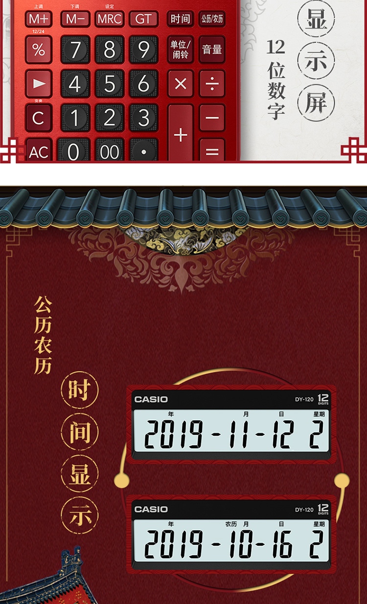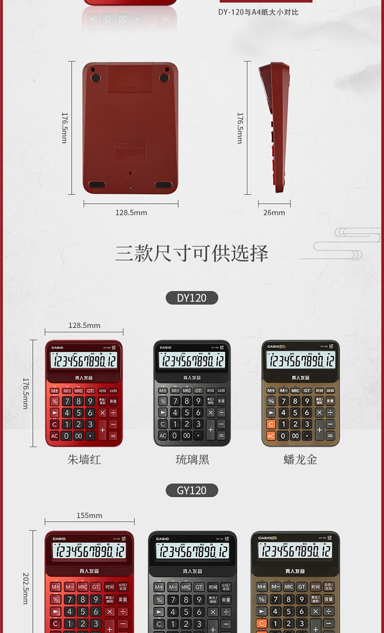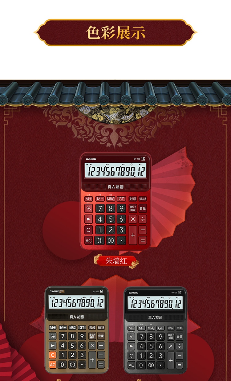 卡西欧(CASIO)DY-120-RD 语音计算器 个 朱墙红