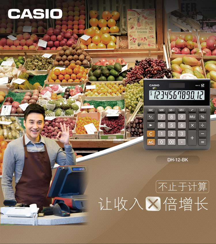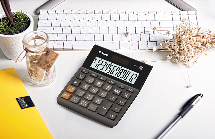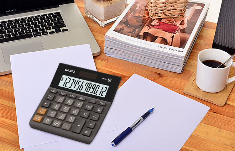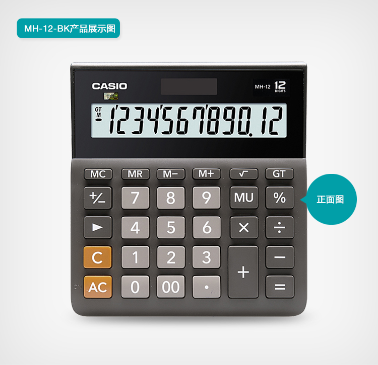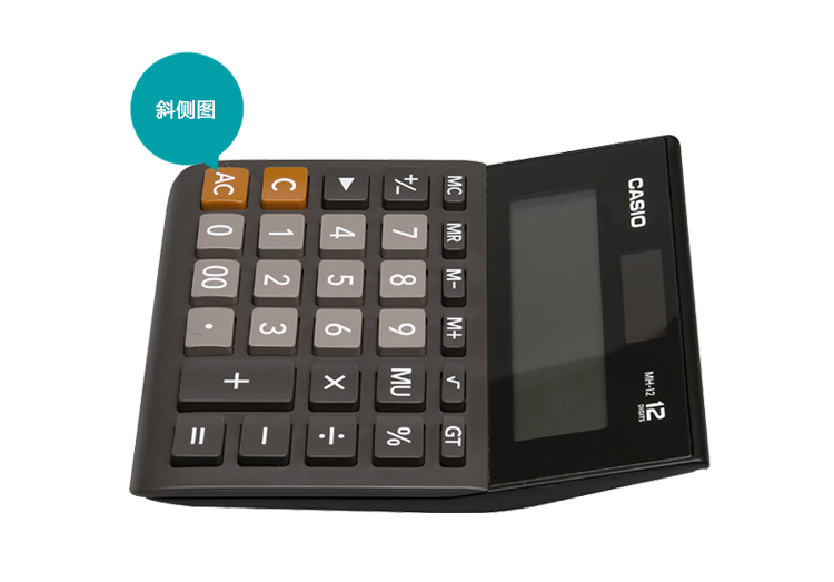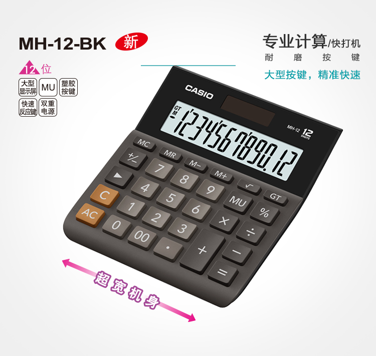 卡西欧(CASIO)MH-12-BK 小型 12位 双电源 超宽计算器 黑色 专业计算系列 个 黑色