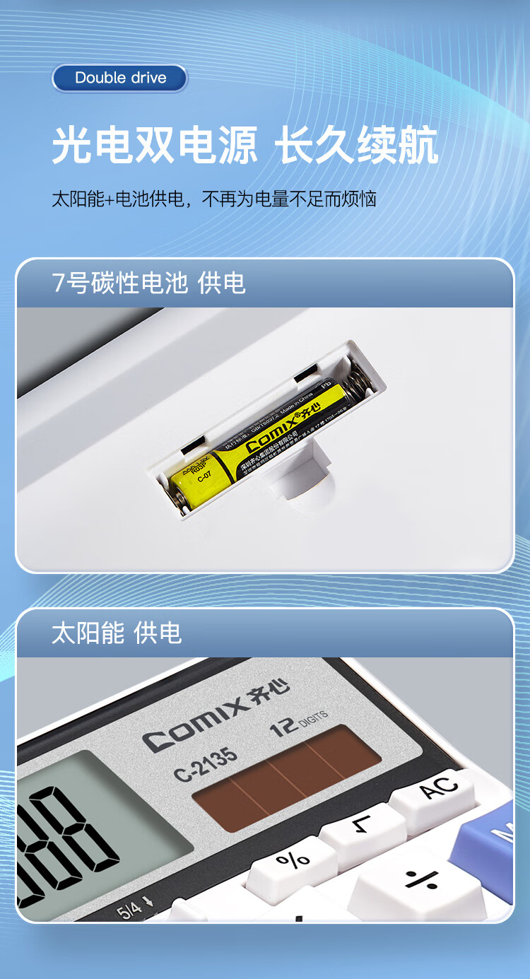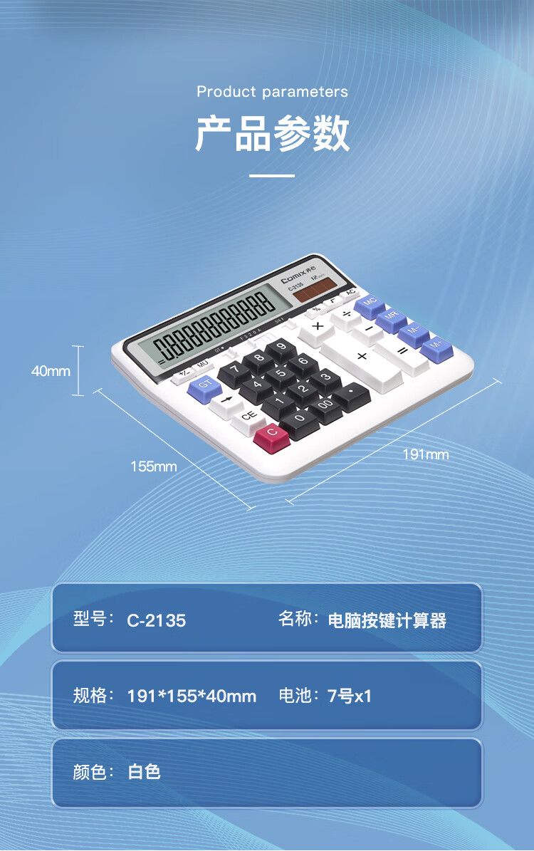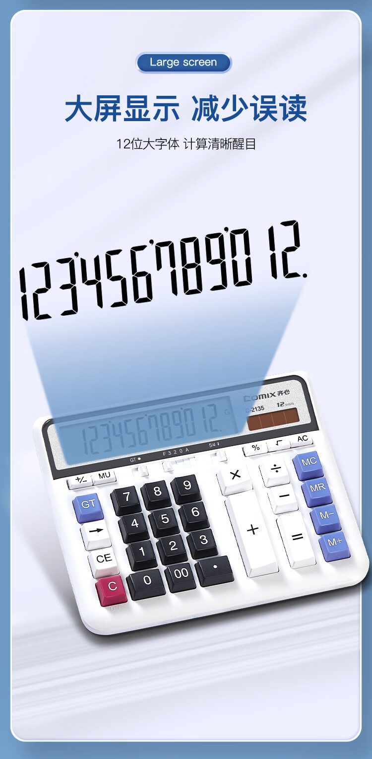 齐心(Comix)双电源电脑按键计算器 12位大屏横式计算机 财务及银行人员适用 办公用品 白色C-2135 个 白色