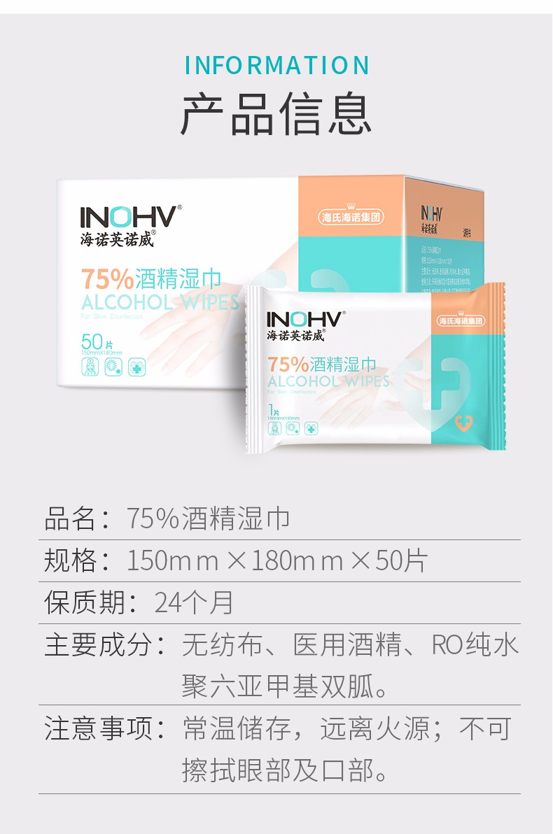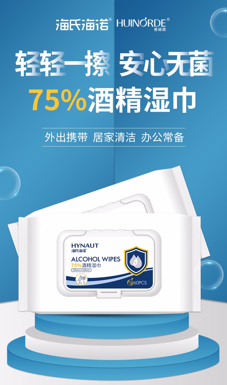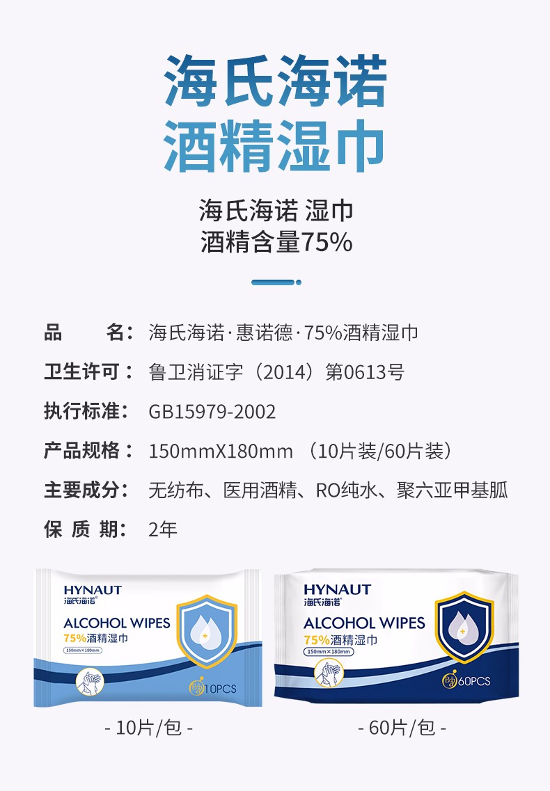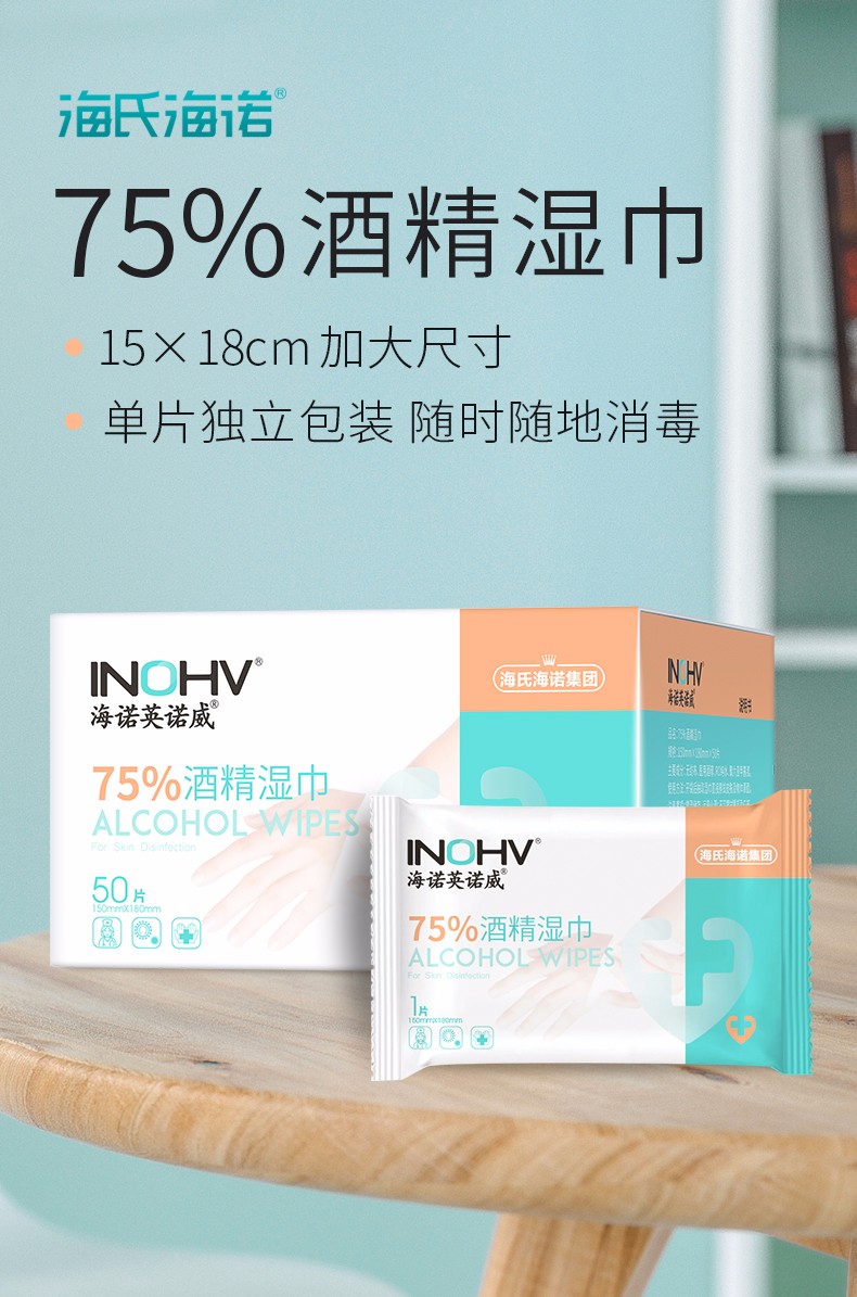 海氏海诺 75%酒精湿巾15*18cm *3包 白色