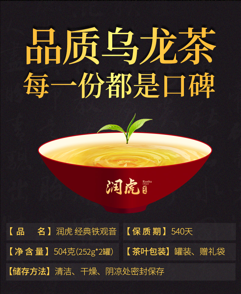 润虎 如是聚茶 清香铁观音(乌龙茶)504克(252克*2)/套(单位:套) 绿色