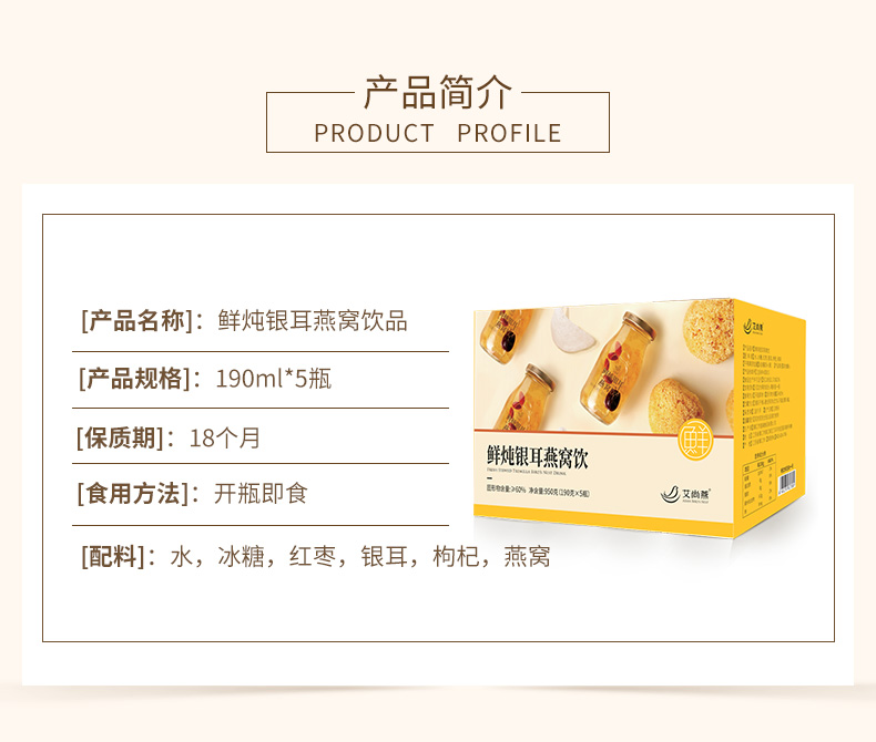艾尚燕 鲜炖银耳燕窝饮5瓶