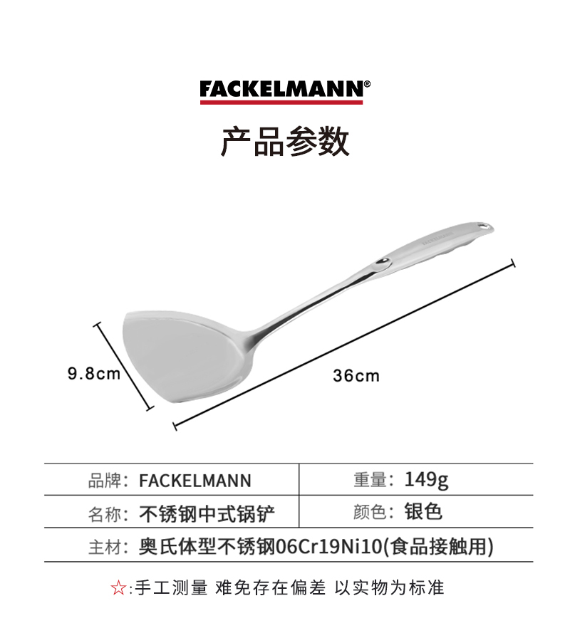 德国法克曼(FACKELMANN)304不锈钢中式锅铲(单位:个) 银色