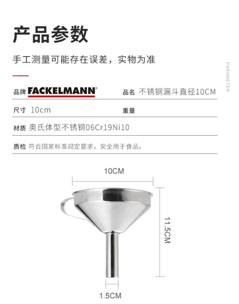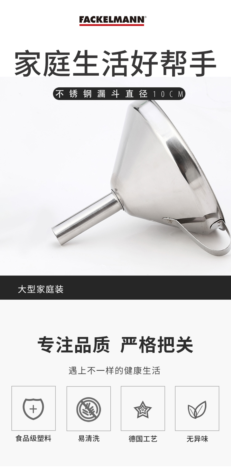 德国法克曼(FACKELMANN)不锈钢漏斗直径10CM(单位:个) 银色