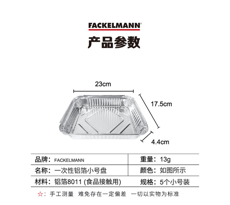 德国法克曼(FACKELMANN)5个装一次性加厚多功能烘焙烧烤铝箔盘 银色