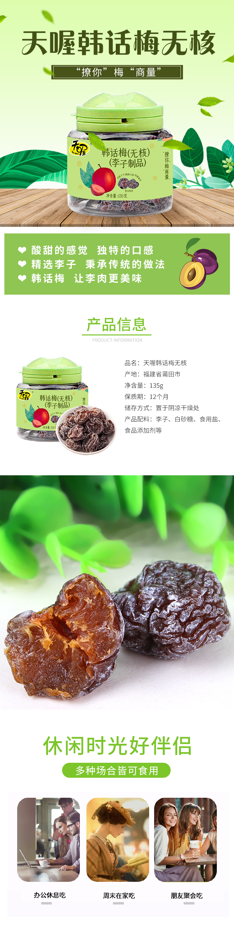 天喔韩话梅 无核 135g*3罐