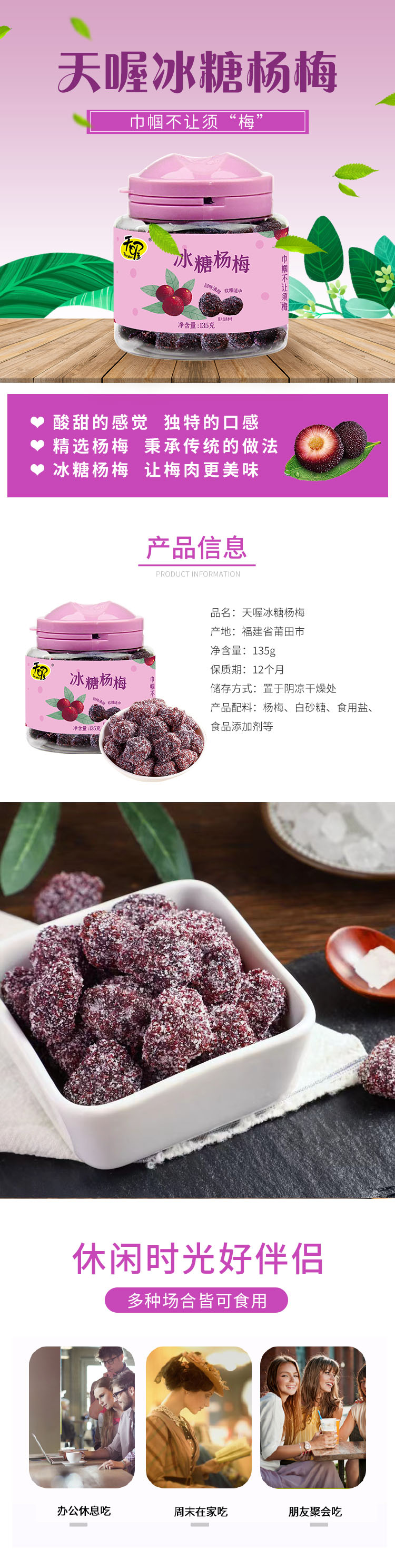 天喔冰糖杨梅135g*3罐