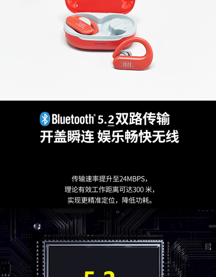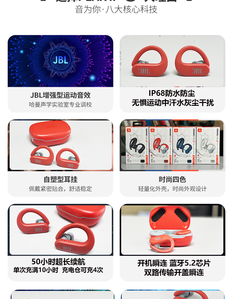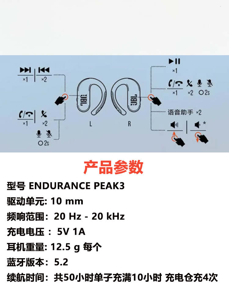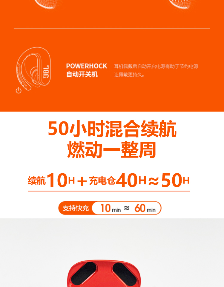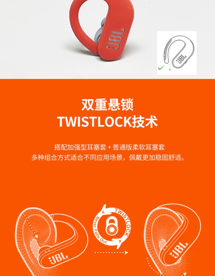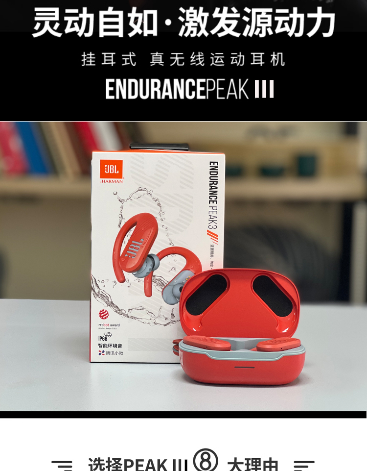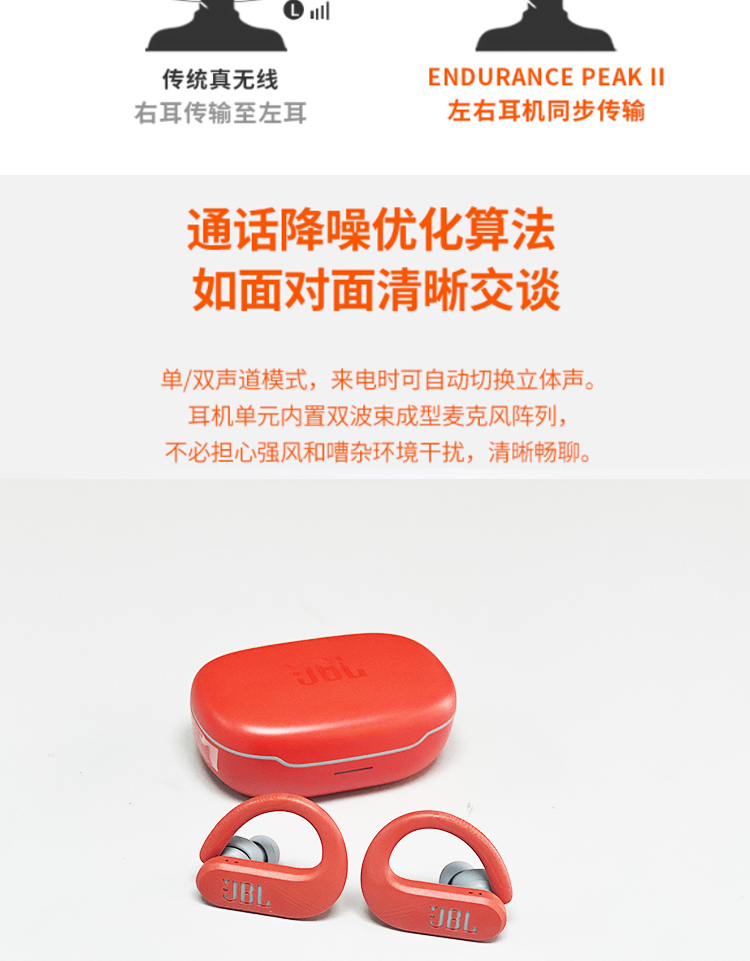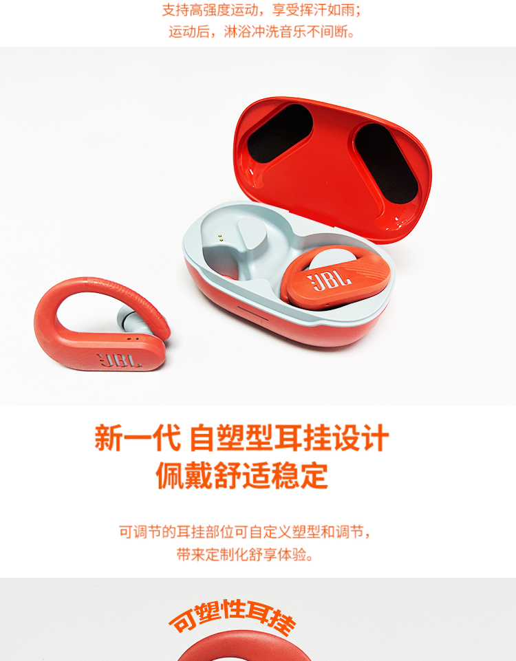 JBL ENDURANCE PEAK3升级版挂耳式防脱落真无线运动蓝牙跑步防水 橙色