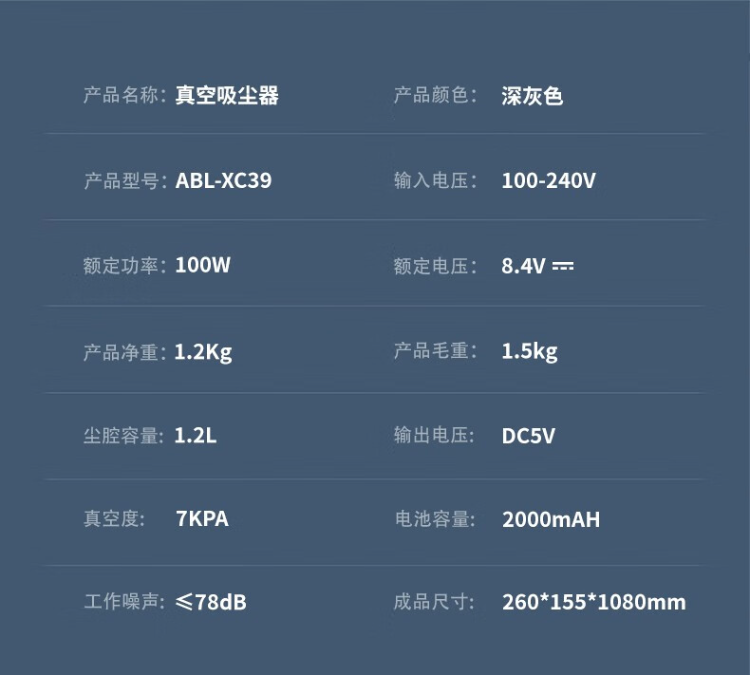 艾贝丽(AIBEILI) ABL-XC39 真空无线吸尘器(单位:台) 深灰色