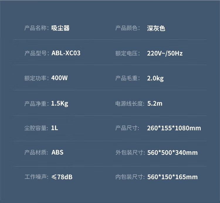 艾贝丽(AIBEILI) ABL-XC03吸尘器 单位:台 黑色