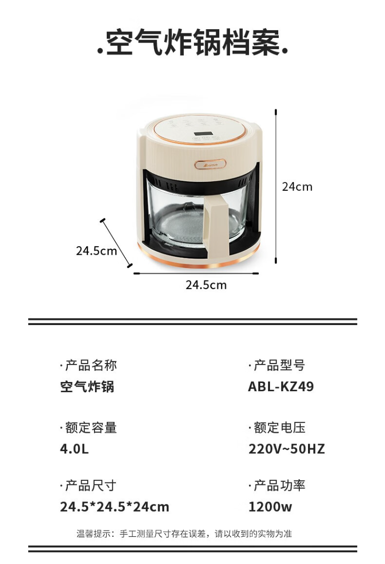 艾贝丽Abereve ABL-KZ49空气炸锅4L 单位:台 白色