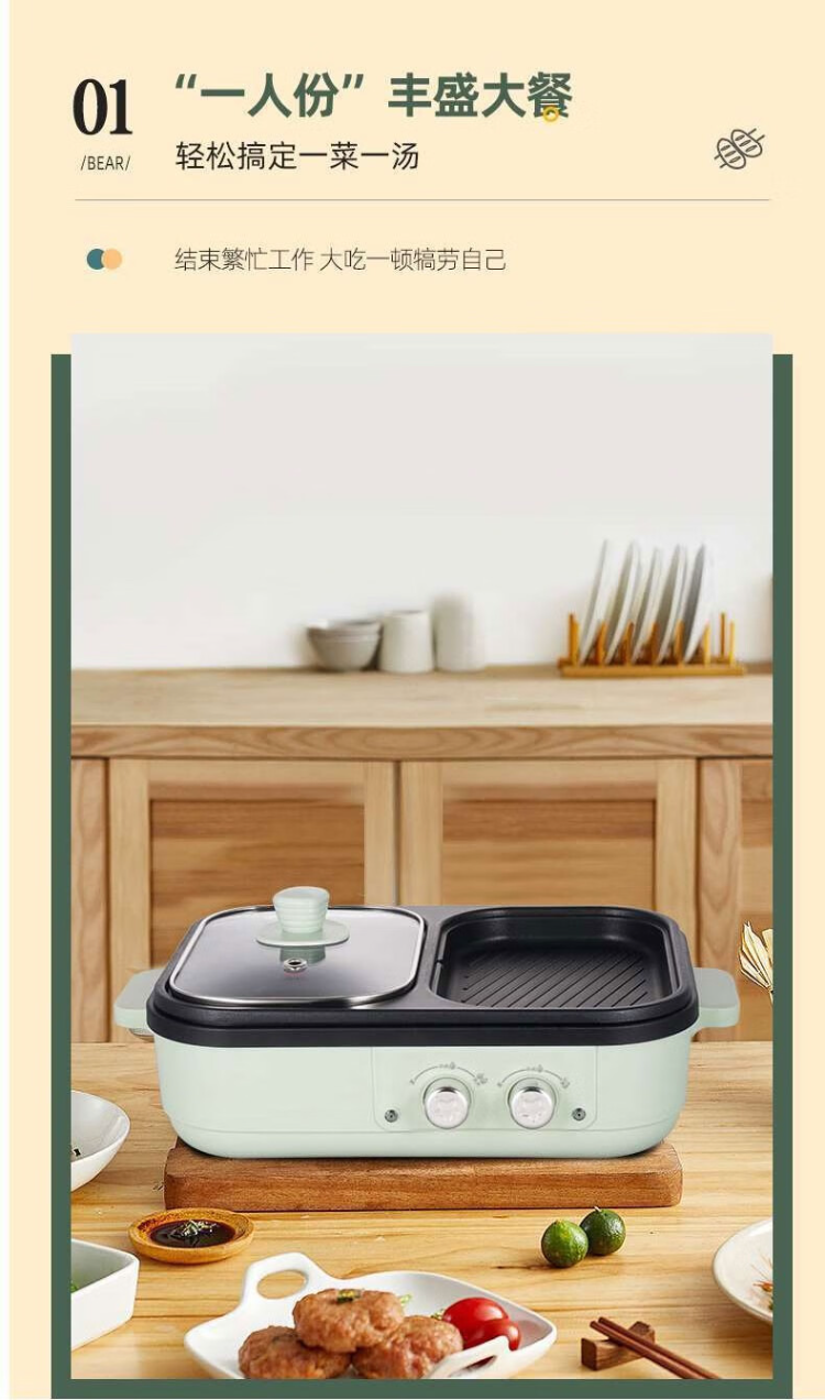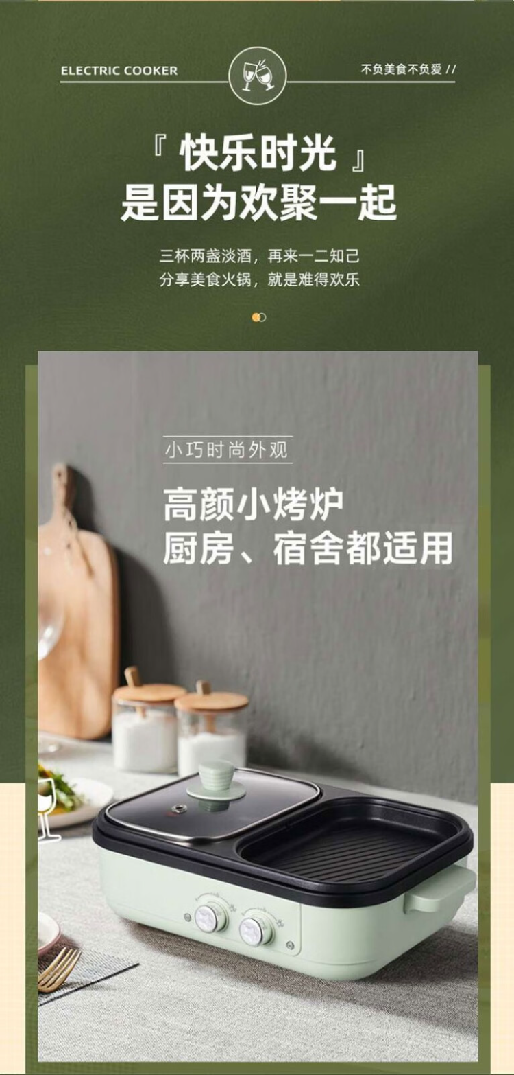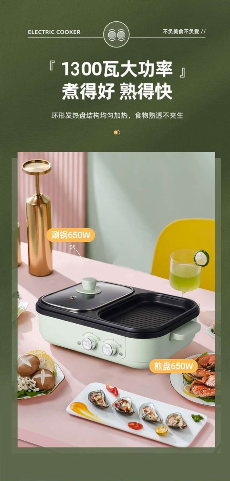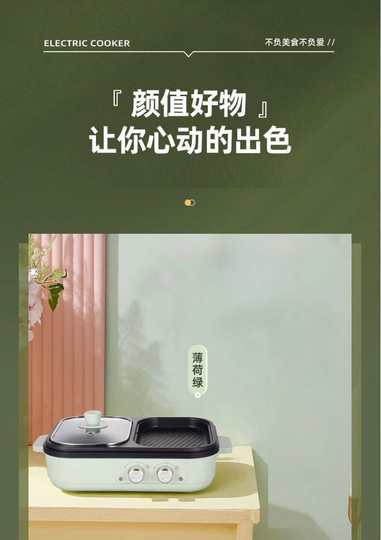 艾贝丽 ABL-HG09多功能料理锅1L 单位:台 浅杉绿