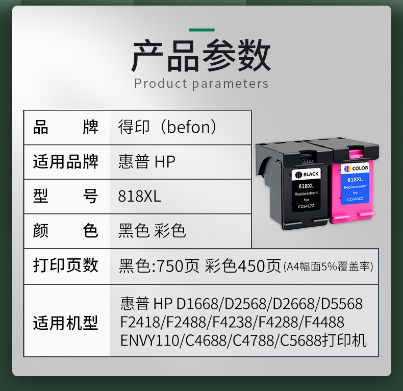 得印(befon) 818 750页+450页 墨盒黑彩套装 黑色 彩色(单位:盒)