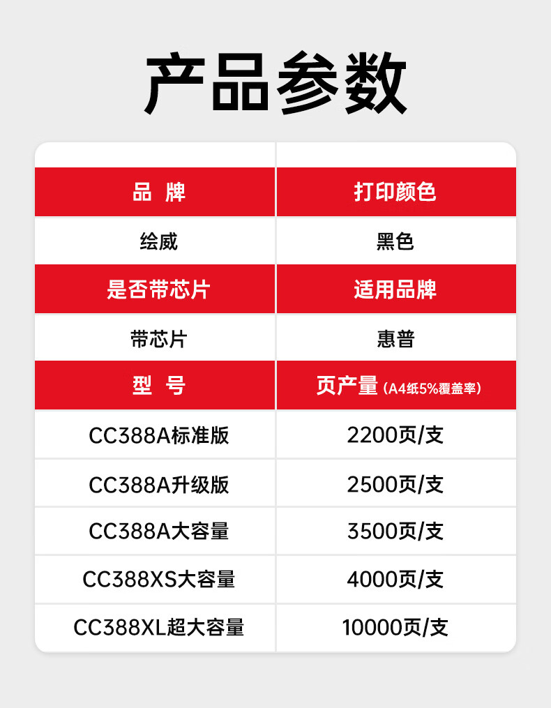 绘威 CC388A 2200页(A4,5%) 硒鼓 黑色(单位:支)