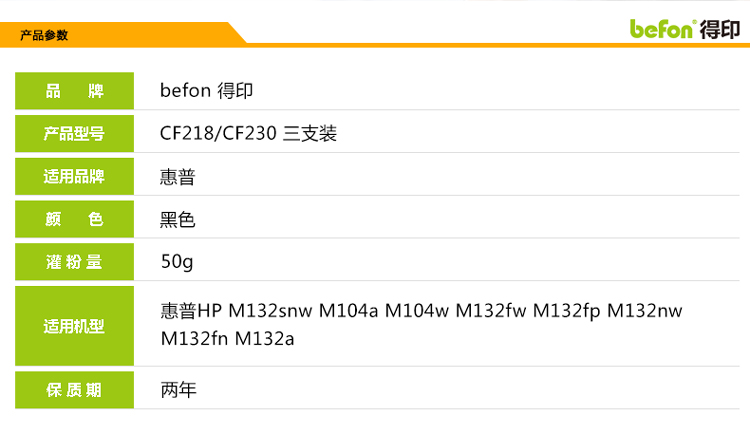 得印(befon) CF218A 50g/瓶 适用HP M104a/M104w 碳粉 3.00 瓶/组 (计价单位:组) 黑色