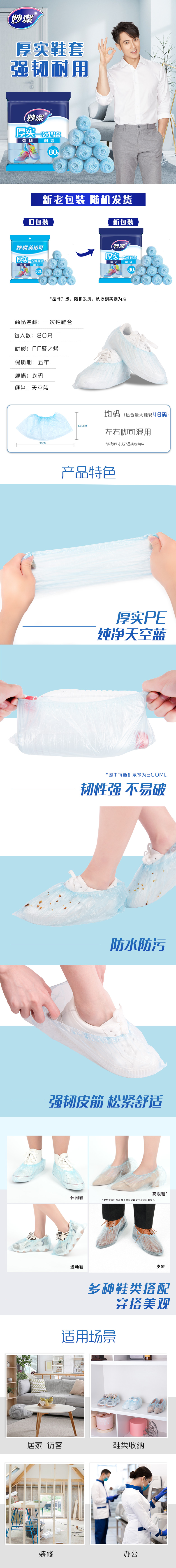妙洁一次性鞋套80只均码(单位:包) 天蓝色