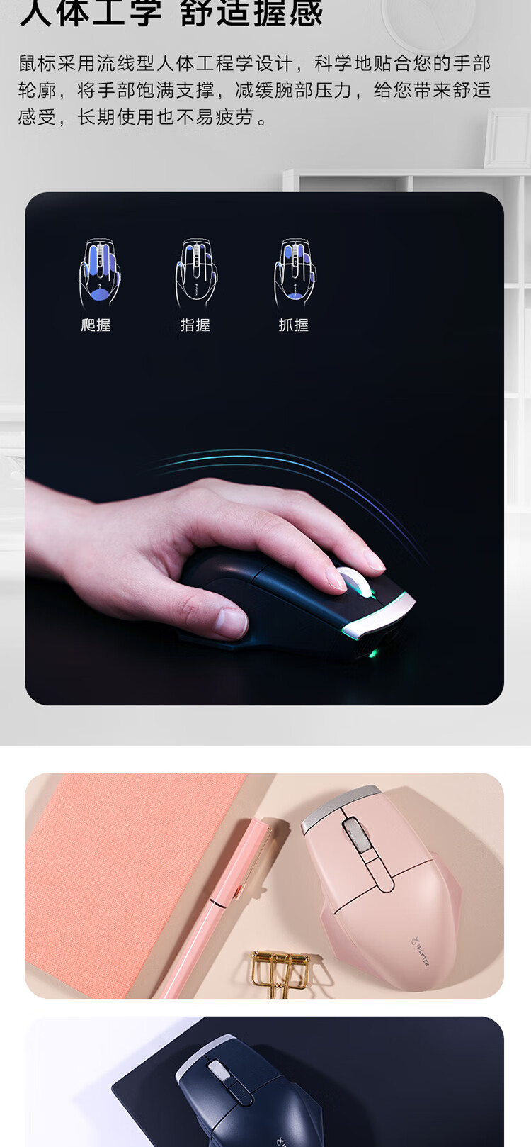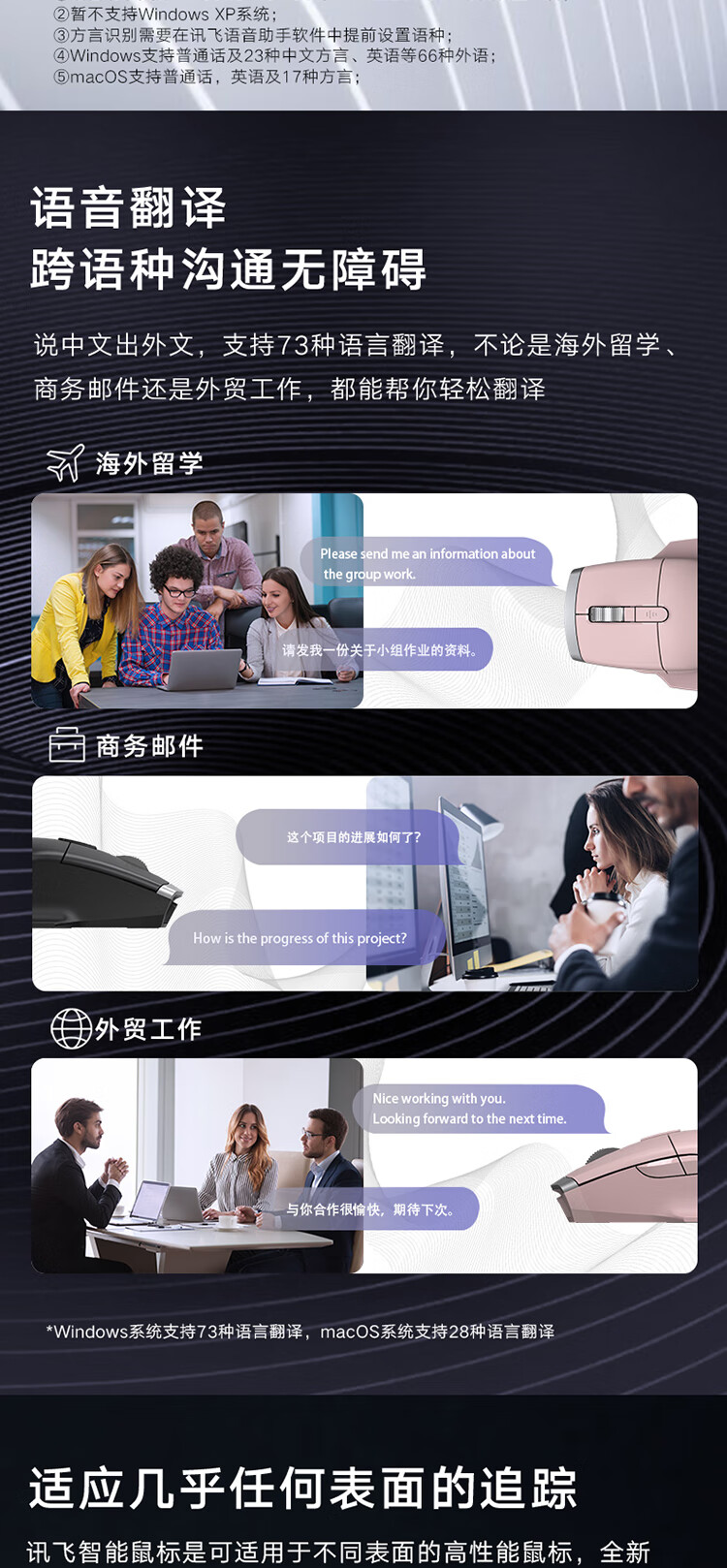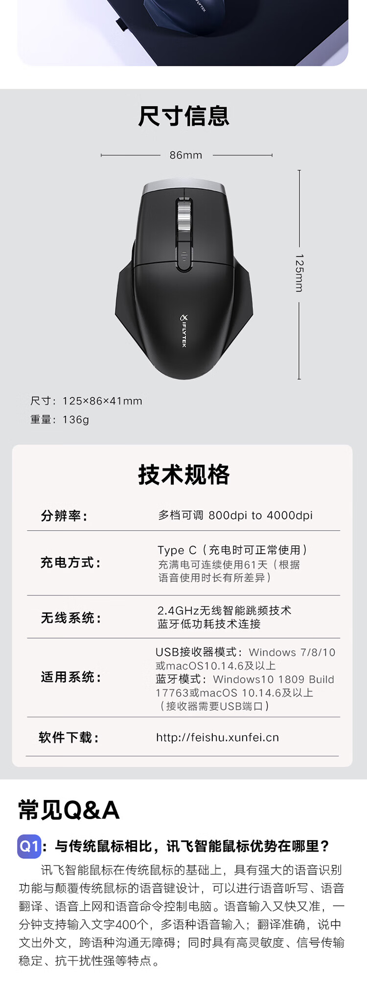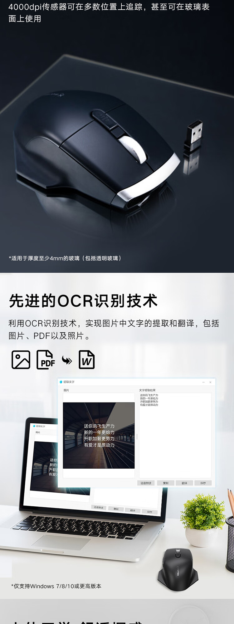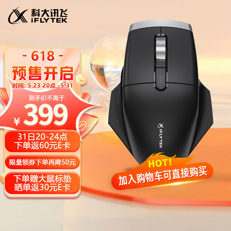 科大讯飞无线蓝牙鼠标M520Pro 办公鼠标 无线外设 人体工学鼠标 舒适握感 自定义侧键 语音输入打字翻译 个 黑色
