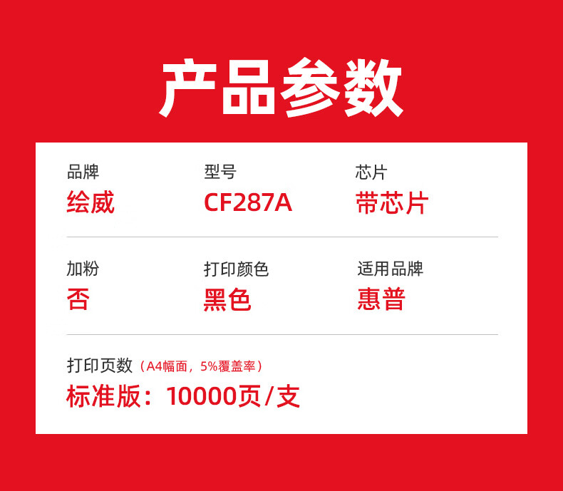 绘威CF287A 87A硒鼓带芯片适用惠普HP LaserJet M501n M506dn M506x一体机粉盒M527dn M527z打印设备墨盒(9000页/支) 黑色