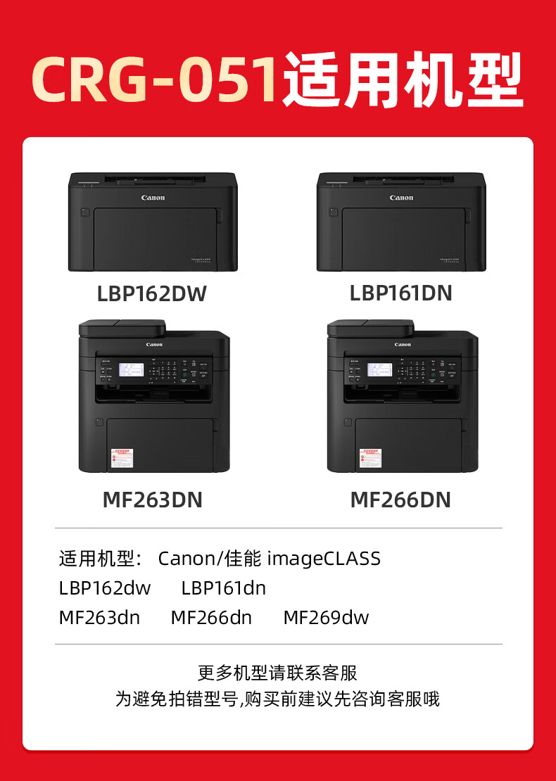 绘威CRG-051粉盒 适用佳能Canon imageCLASS LBP162dw LBP161dn MF263dn MF266dn MF269dw打印机墨盒 碳粉盒(2000页/支) 黑色