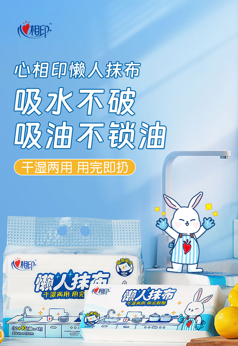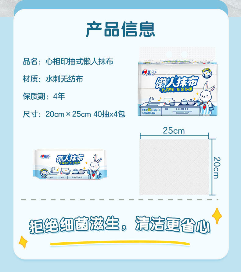 心相印抽取式懒人抹布单提装40抽*4包*2提JXG120(单位:提) 蓝色