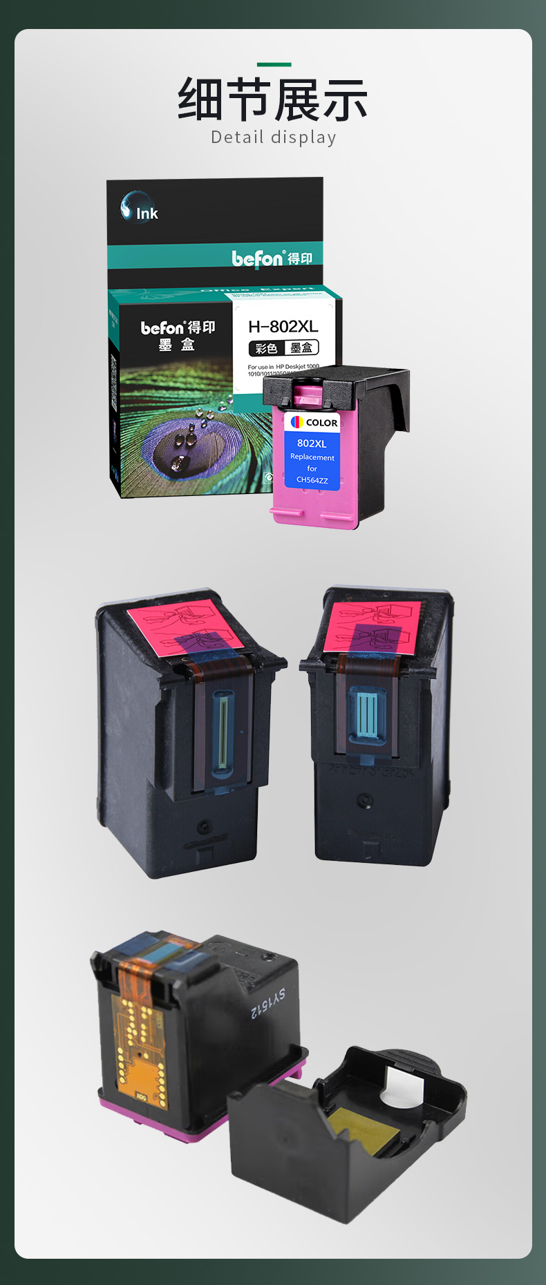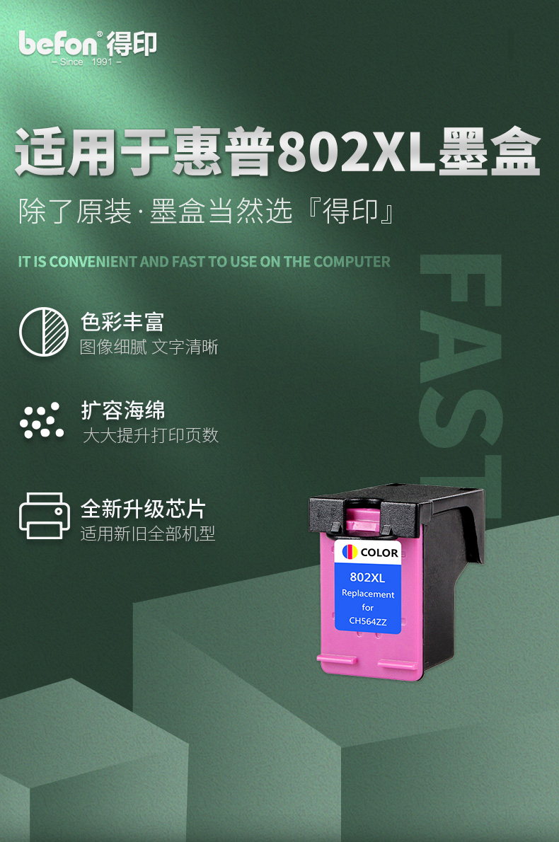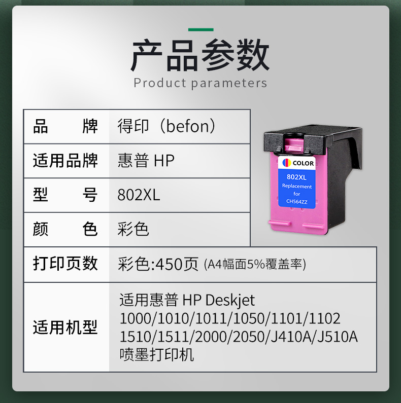 得印(befon) 802XL 450页(A4,5%) 墨盒 彩色(单位:支)