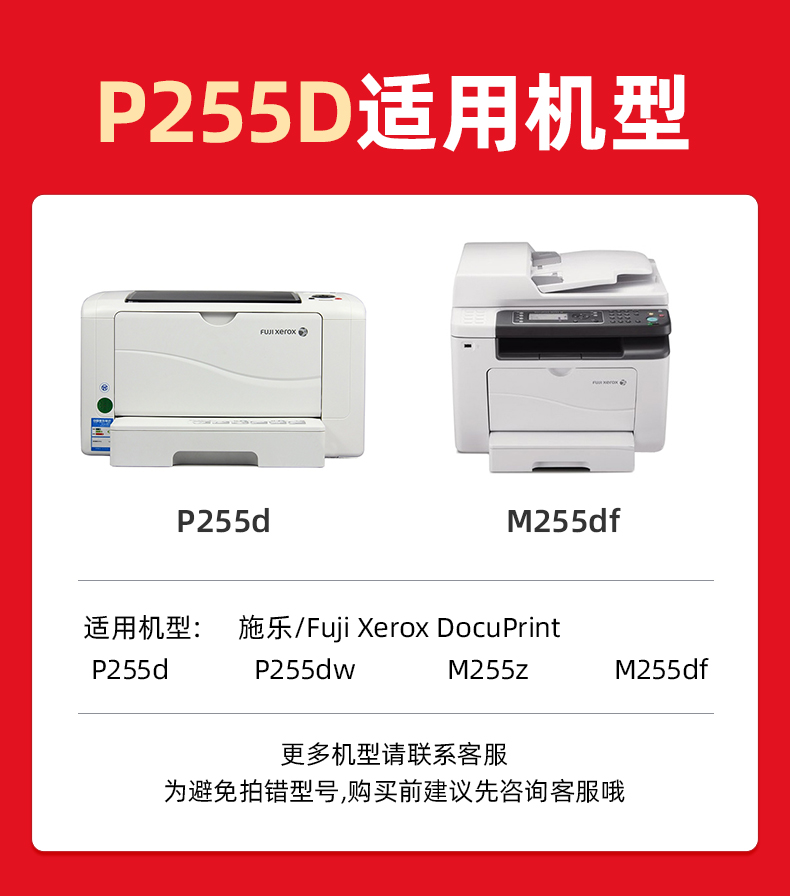 绘威P255D粉盒 适用富士施乐Fuji Xerox P255d P255dw P255df打印机碳粉M255df M255Z M255DF含载体CT201920(2500页/支) 黑色